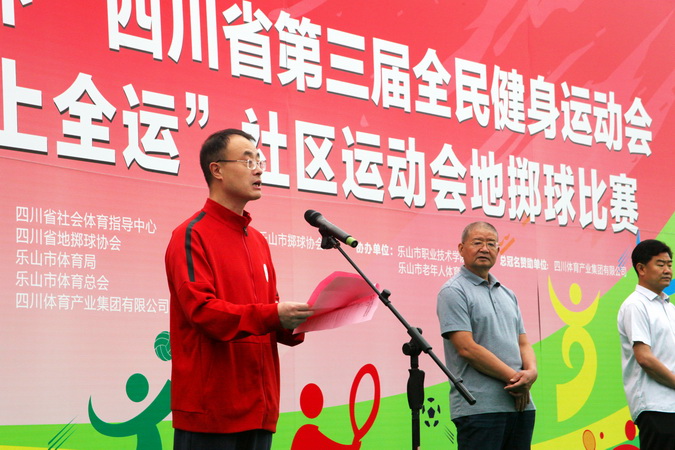 2021年5月15日至18日,“川体集团杯”四川省第三届全民健身运动会暨“我要上全运”社区运动会地掷球比赛在sunbet申搏官方网站举行。四川省体育局群众体育处一级调研员廖川江,四川省社会体育指导中心负责人孙勇,sunbet申搏官方网站院长刘忠,乐山市人大常委会原副主任蒋加强,乐山市体育局局长向蕾及运动员、教练员参加了开赛仪式,刘忠院长代表学院致了欢迎词并颁奖,副院长封家福出席了颁奖仪式。