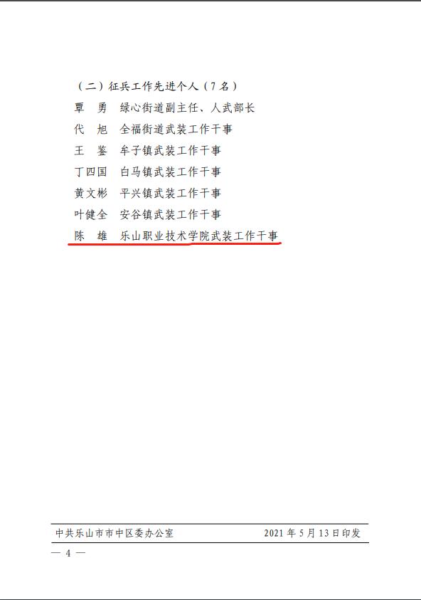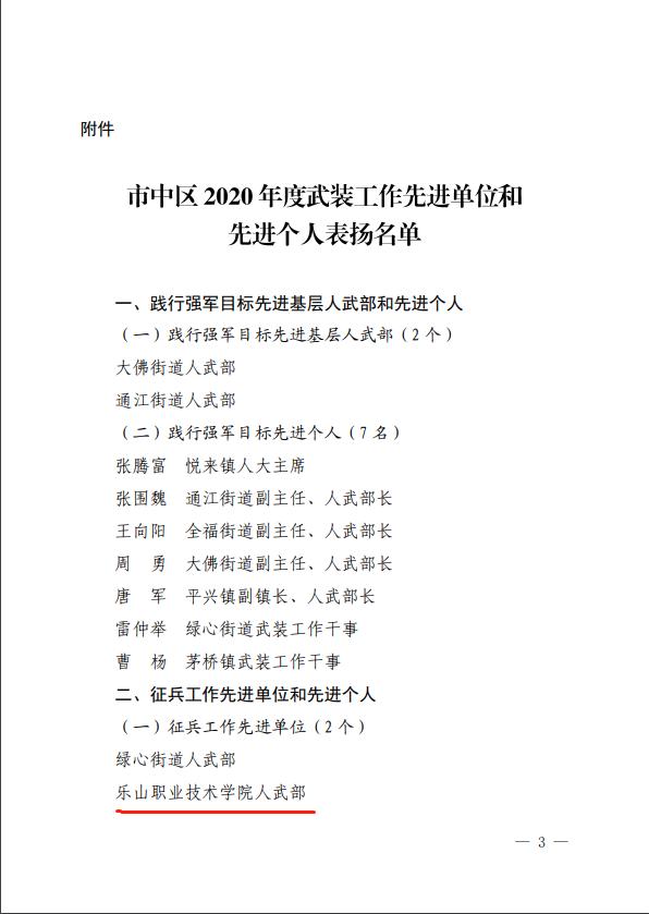 sunbet申搏官方网站党委武装部再次被市中区委、区政府通报表彰为征兵工作先进单位,学院党委武装部陈雄被评为征兵工作先进个人。乐山市市中区仅有两个单位获此殊荣。