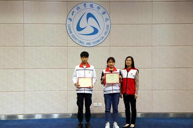 开幕式后,比赛随即展开。经过前期选拔,乐山三所高校各有5名选手进入决赛。决赛分笔试和实际操作,8:30分,笔试在教学楼2c102教室进行,选手们成竹在胸,自信满满地完成了笔试考试。随后,实操比赛在1号实训楼104教室展开,观众通过同步直播的方式在图书馆学术报告厅观看比赛。参赛队员们按照操作程序有条不紊地开展,每一轮比赛结束后,评委老师上台仔细检查、认真评估,并做出专业细致的点评。