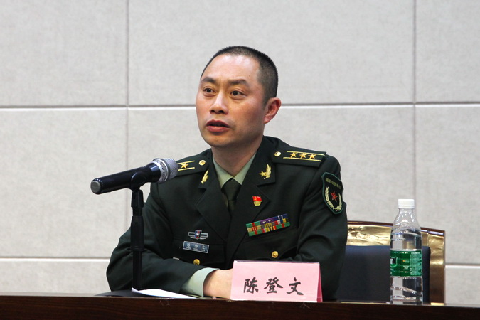 陈登文就大学生入伍的流程、身体要求、政治考核进行了全面讲解并现场和同学们互动,认真解答同学们提出的问题。鼓励青年学子踊跃报名应征,积极投身到人民军队的大熔炉中去淬炼成钢,同时在部队实现自己的人生价值。