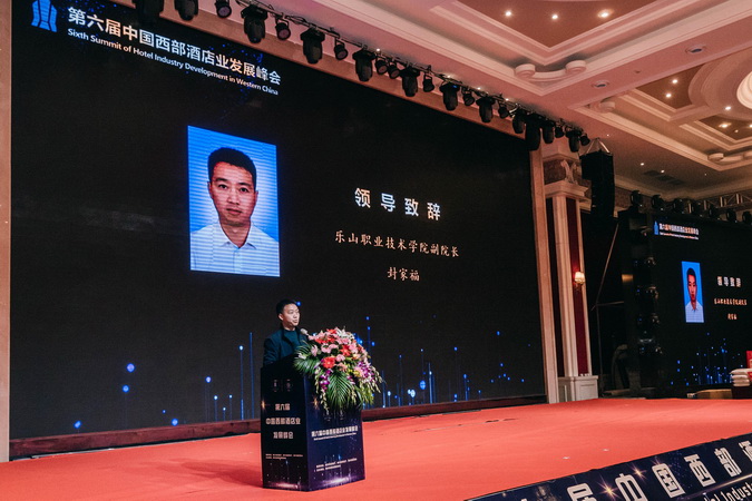 封家福受邀在大会致辞,他向与会代表介绍了学院的基本情况和办学理念,分享了学院和四川省商务酒店协会联合倡议组建的四川酒店职教联盟的发展情况及取得的成果,并表示愿意和与会的企业进一步加强合作,校企深度融合,共育实用人才,共同推动四川酒店事业发展,为酒店行业人才培养做出更大努力。