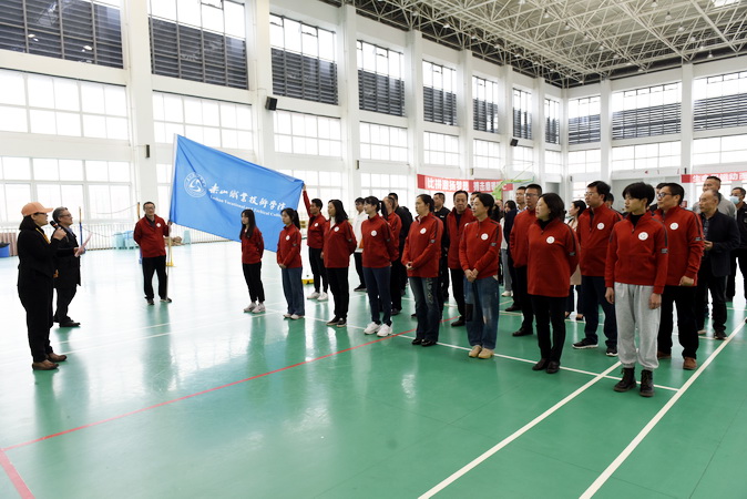 2021年4月6日下午,学院在多功能体育馆举行“参加市八运会启动仪式暨首场比赛出征仪式”,学院党委副书记、代表团团长陈芝海出席并讲话,工会副主席、代表团副团长黄晓莉主持仪式,10支参赛队领队、教练、运动员代表、学生裁判员参加了仪式。