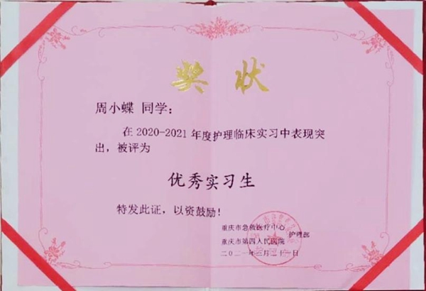 近日,我院护理系2021届护理专业重庆市急救医疗中心实习小组在众多学校实习小组中脱颖而出,被授予“2020-2021年度护理实习生优秀集体”荣誉称号!