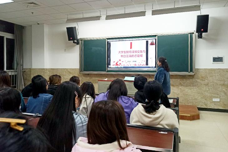 李老师引经据典,通过身边发生的事件来讲解了爱情对于大学生的重要程度,以及同学们应该如何去交友和正确处理恋爱关系。大家在李老师的阐述中时而为爱情的美好而开怀,时而又为爱情的无奈而感叹。