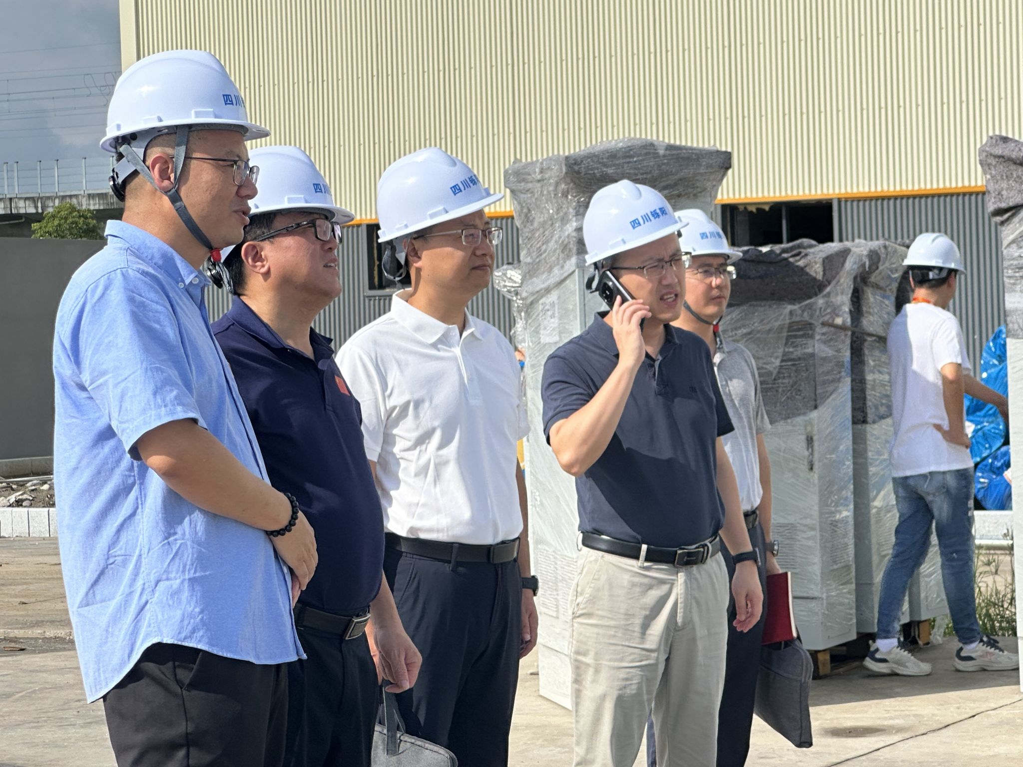 首先由四川铄阳异质结新能源有限公司总经理蔡剑华介绍公司历程、主营业务、项目建设进展等并进行现场参观。四川铄阳异质结新能源有限公司是一家专业从事光伏产品研发、生产、销售于一体的制造企业,采用自主研发的二代异质结HBC技术,以生产高性能的异质结电池片,产品为柔性组件专用的异质结HBC电池。公司在乐山高新区建设年产10GW高效异质结电池片项目,总投资35亿元,占地约204亩,分两阶段建设5条N型晶硅电池生产线,年产5GW高效异质结HBC晶硅电池,其中一阶段2GW、二阶段3GW。该项目是省级重点项目,将于2025年9月底实现产品试生产,全部投产后年产值可达110亿元。