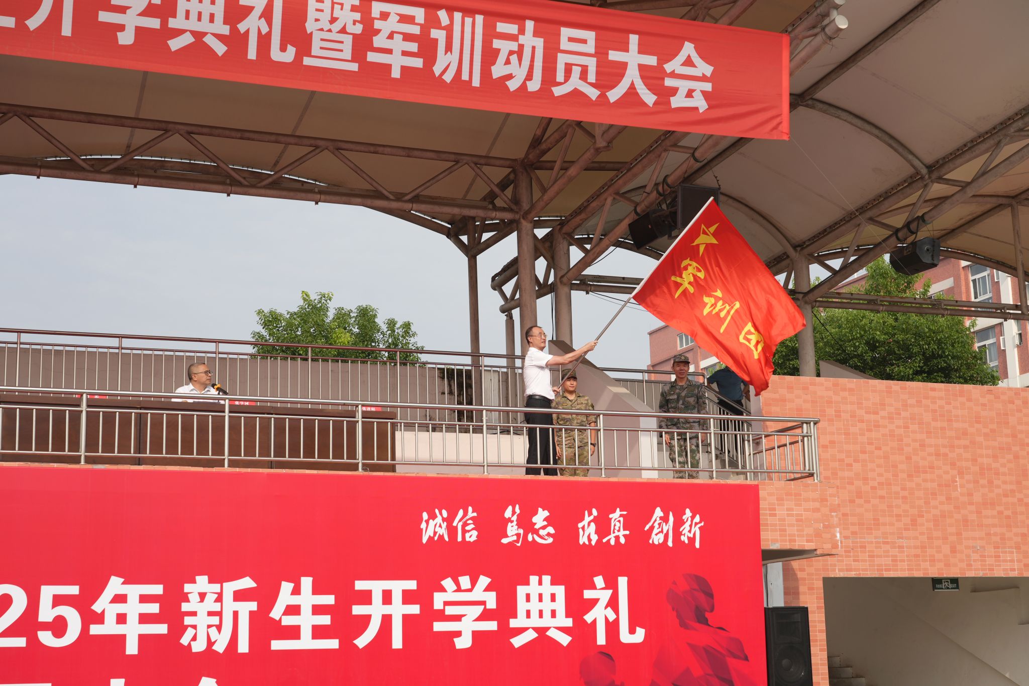 校长刘忠为军训团授旗,并代表学校全体师生员工,对2025级新同学的到来表示最热烈的欢迎和最诚挚的祝贺。希望同学们在科学与知识的海洋中,培养自由之思想、独立之思考;在技术与技能的训练中,锤炼工匠之精神、职业之操守;在学习和生活的过程中,追求文明之精神、强健之体魄。时刻将校训铭记于心,以诚信为本、笃志前行、求真务实、勇于创新,努力成为一名合格的sunbet申搏官方网站学生。