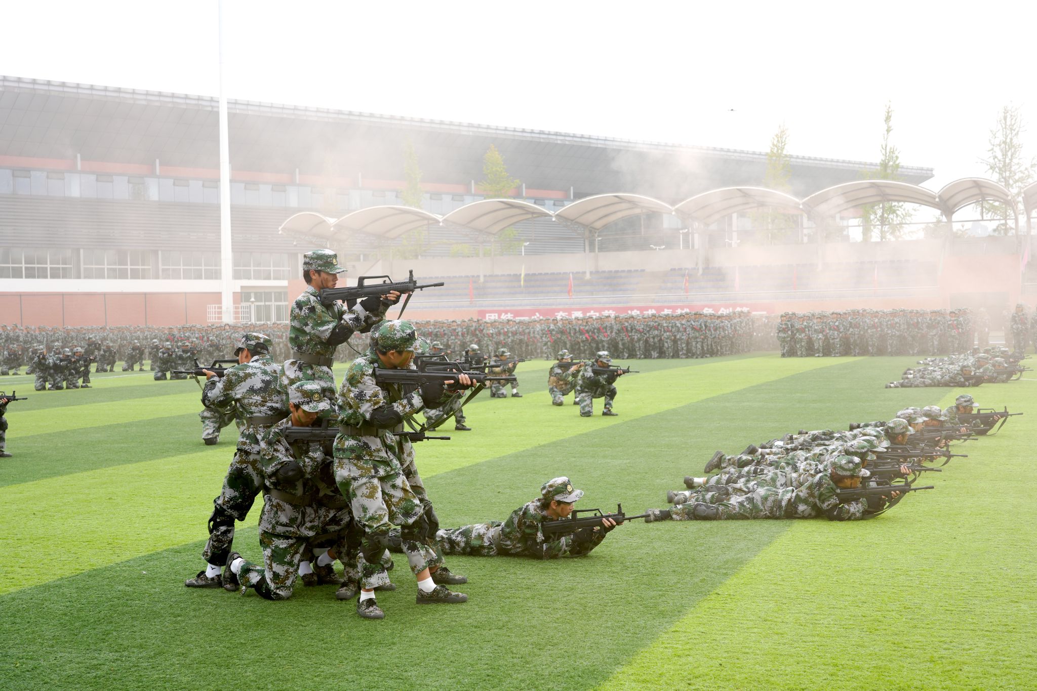上午九时,军训总结大会正式拉开序幕。首先按年度军训实施方案要求依次进行了应急疏散、反恐防暴、医疗救护、实战灭火现场演练。伴随着激昂的《分列式进行曲》,在国旗方队的护卫下,9个分列式受阅方阵迈着铿锵有力的步伐依次入场。同学们身着统一的迷彩服,精神抖擞,口号嘹亮,动作整齐划一,挺拔的身姿、坚定的眼神,充分展现了新时代的乐职青年学子,经过军事训练洗礼后的过硬作风和蓬勃朝气。一个个方阵如同一块块移动的“钢铁长城”,依次经过主席台接受检阅。