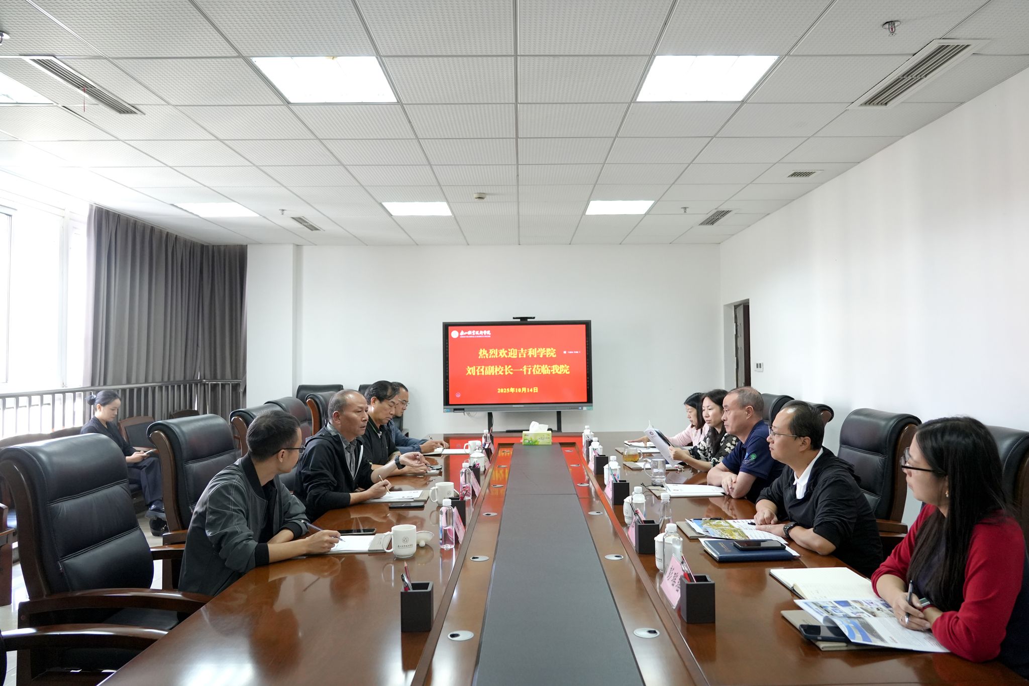 10月14日,吉利学院副校长刘召一行到访sunbet申搏官方网站,双方在行政楼324会议室召开座谈会。校长刘忠出席,党委副书记、工会主席张佳主持,教务处、发展规划处、智能制造学院相关领导参会。