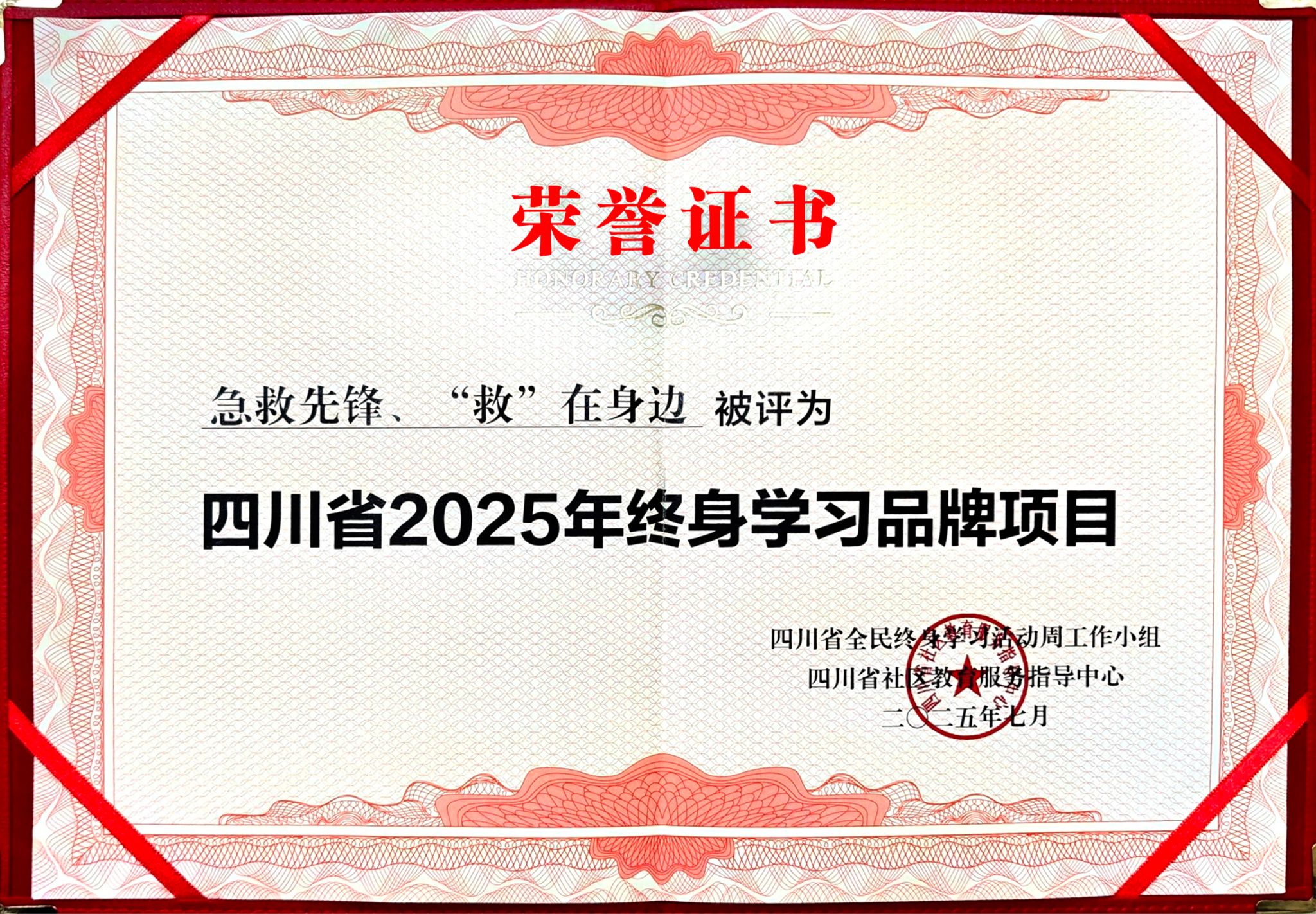 该荣誉由四川省社区教育服务指导中心组织评审,旨在推广优秀社区教育模式。本项目通过标准化课程和个性化设计,显著提升了不同群体的应急响应能力,为健康中国建设提供了可复制的实践范例。