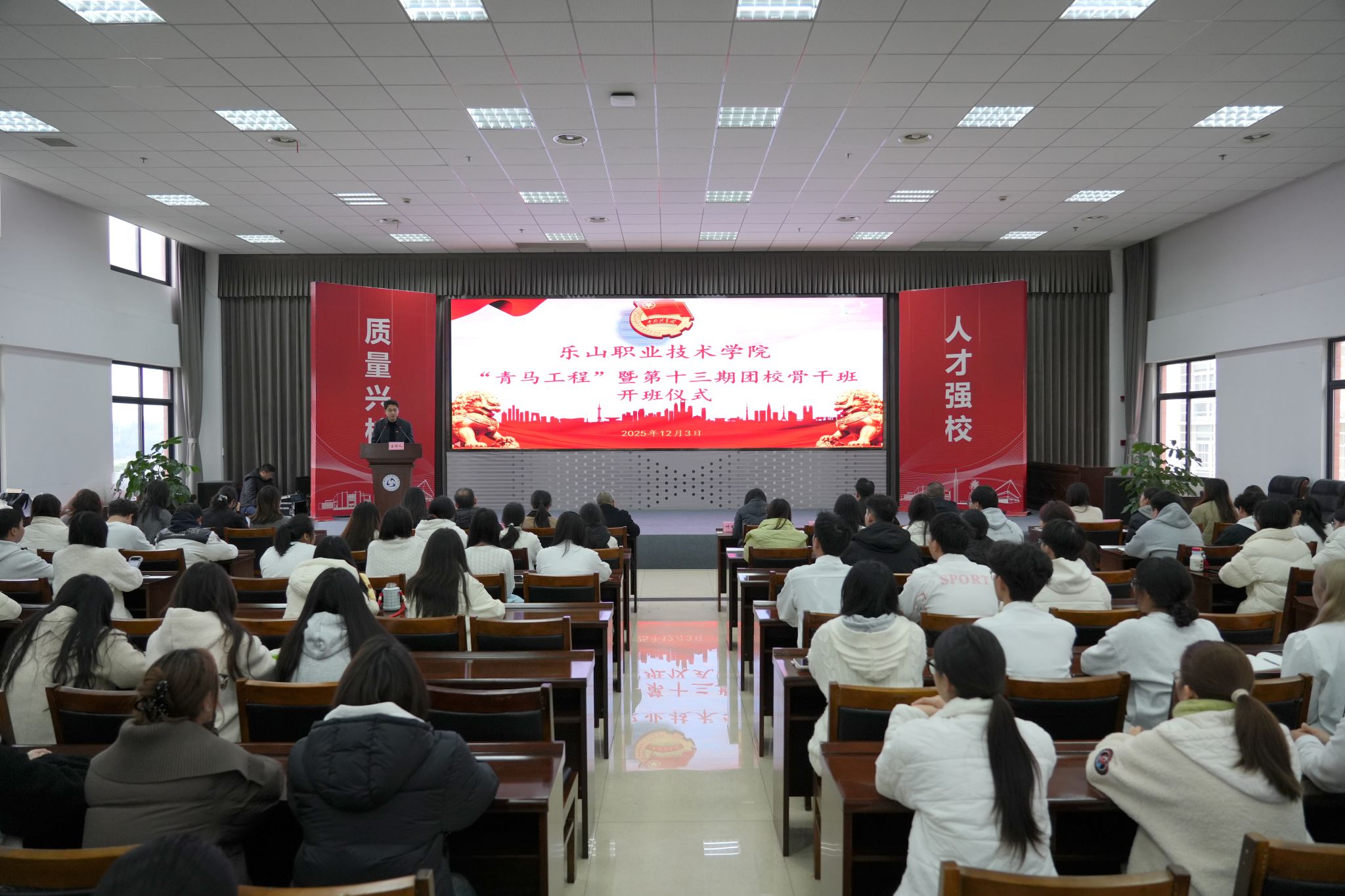 为深入学习贯彻党的最新理论成果,加强青年思想政治引领,着力为党培养和输送青年政治骨干,12月3日,学校“青年马克思主义者培养工程”暨第十三期团校骨干班开班仪式在学术交流中心举行。校党委委员、副校长张学河出席,相关职能部门负责人、各二级学院党团负责同志及全体学员参加。仪式由校团委副书记罗贤主持。
