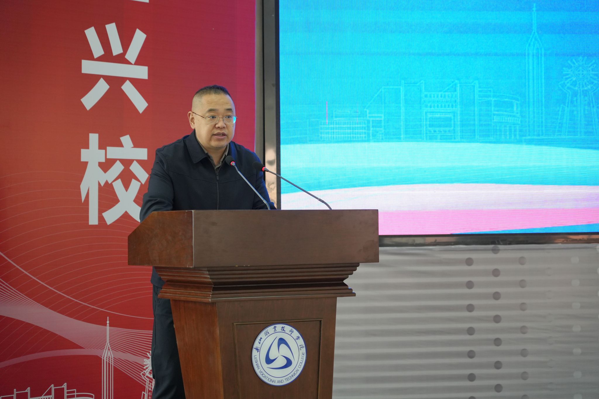 乐山市政协副主席熊建新,四川旅游学院党委常委、副校长李想,四川省旅游投资集团有限责任公司副总经理伍斌,南充文化旅游职业学院党委书记王荣秀,sunbet申搏官方网站党委书记成定彬,四川省旅游学校党委书记、校长赵晓鸿,乐山大佛旅游投资开发(集团)有限公司党委委员、副总经理鲁霞等领导出席大会,会议由学校党委委员、副校长周芹主持。