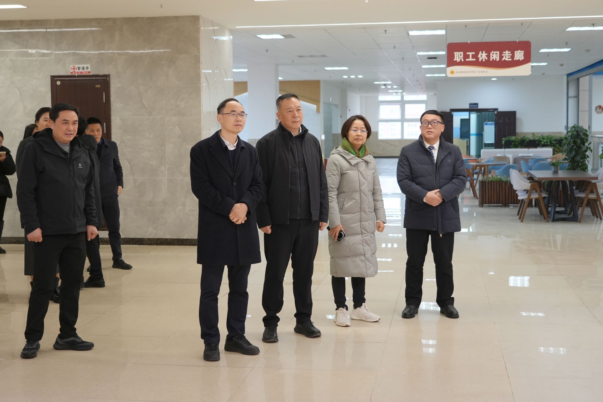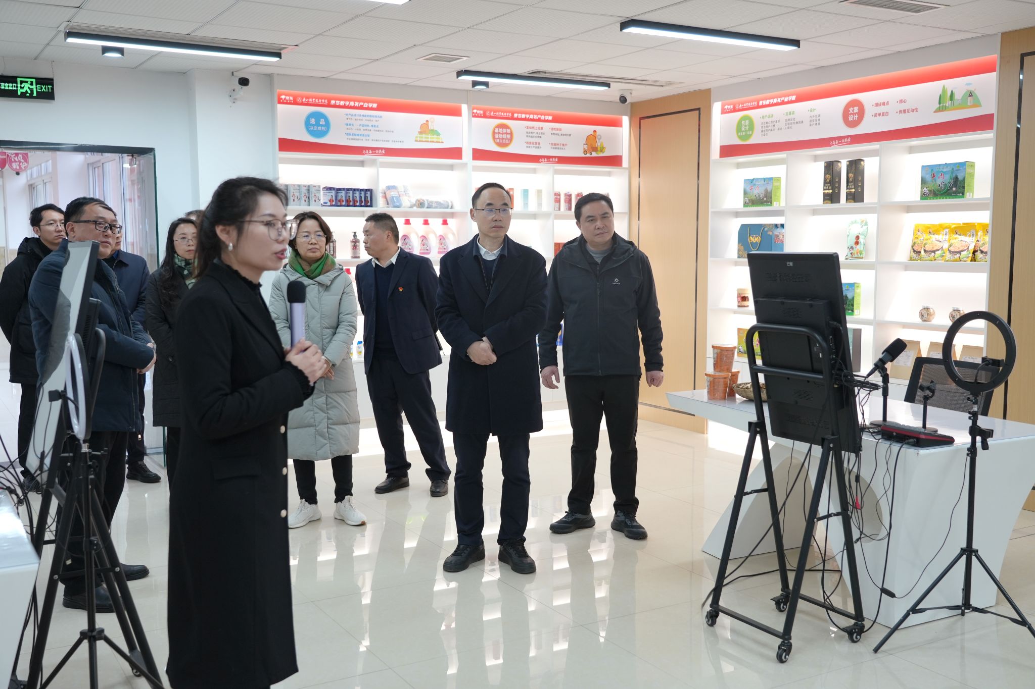 随后,丁念友一行先后参观了学校中国共产党人精神谱系讲习馆、口腔医学生产性实训基地、京东数字商务产业学院,以及机器人实训中心、科美达中试基地、青江艺术空间,沉浸式调研学校文化育人成果、特色专业建设、产教融合落地及实训教学开展情况。