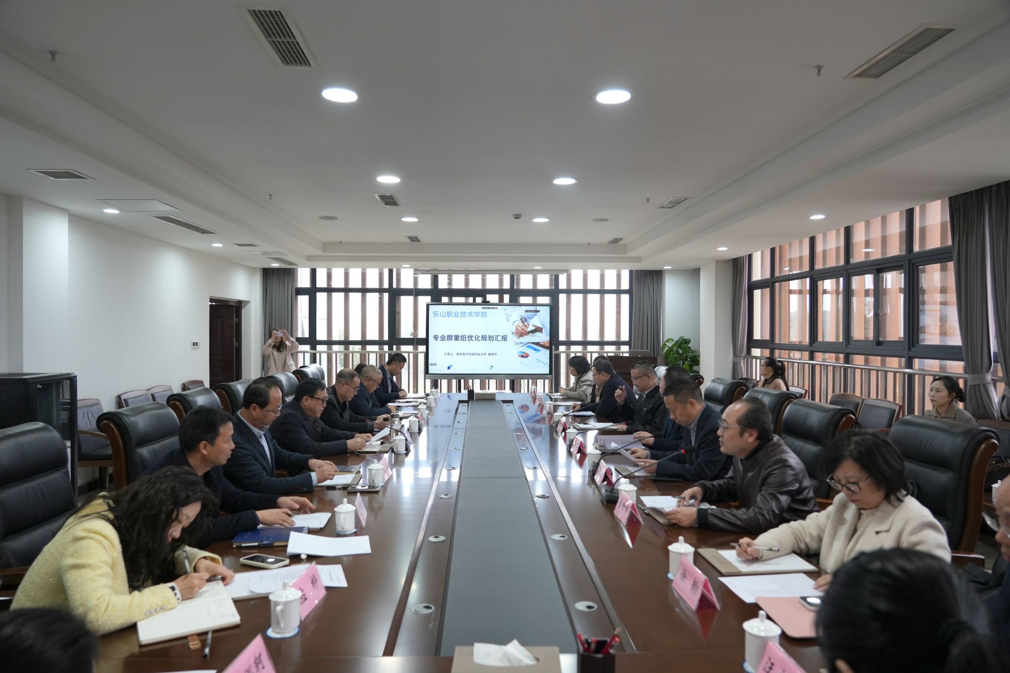 集中培训后,学校全体校领导与专家团队结合前期专业调研结果,围绕专业群重组优化意见开展专项交流,专家团队就专业群重组优化切口作简要汇报,双方针对专业群建设进行深入沟通。