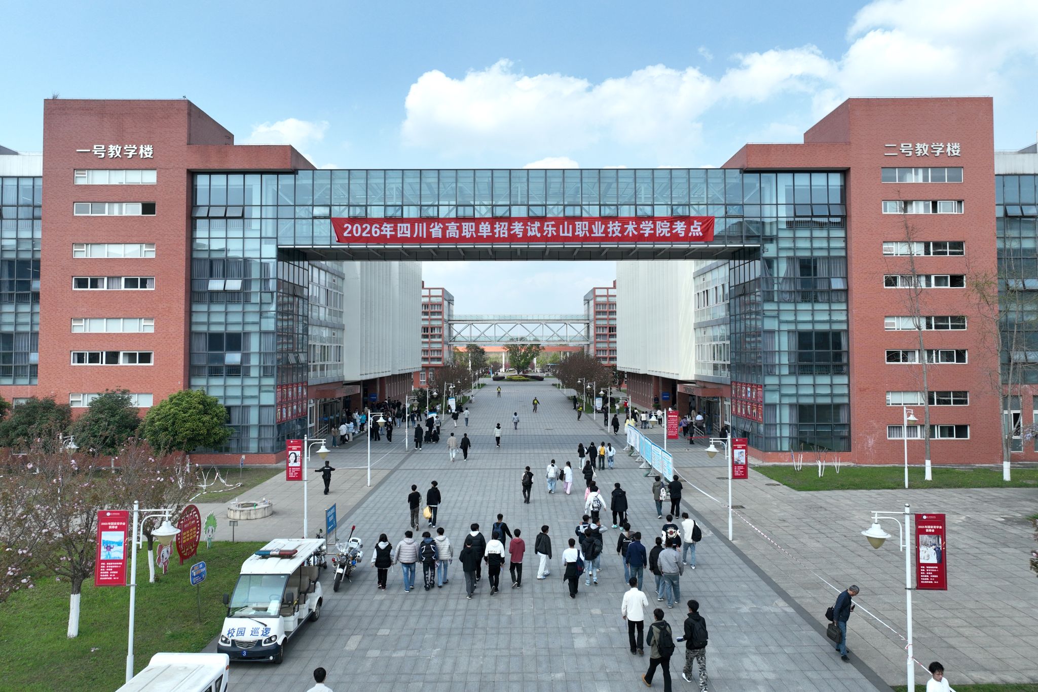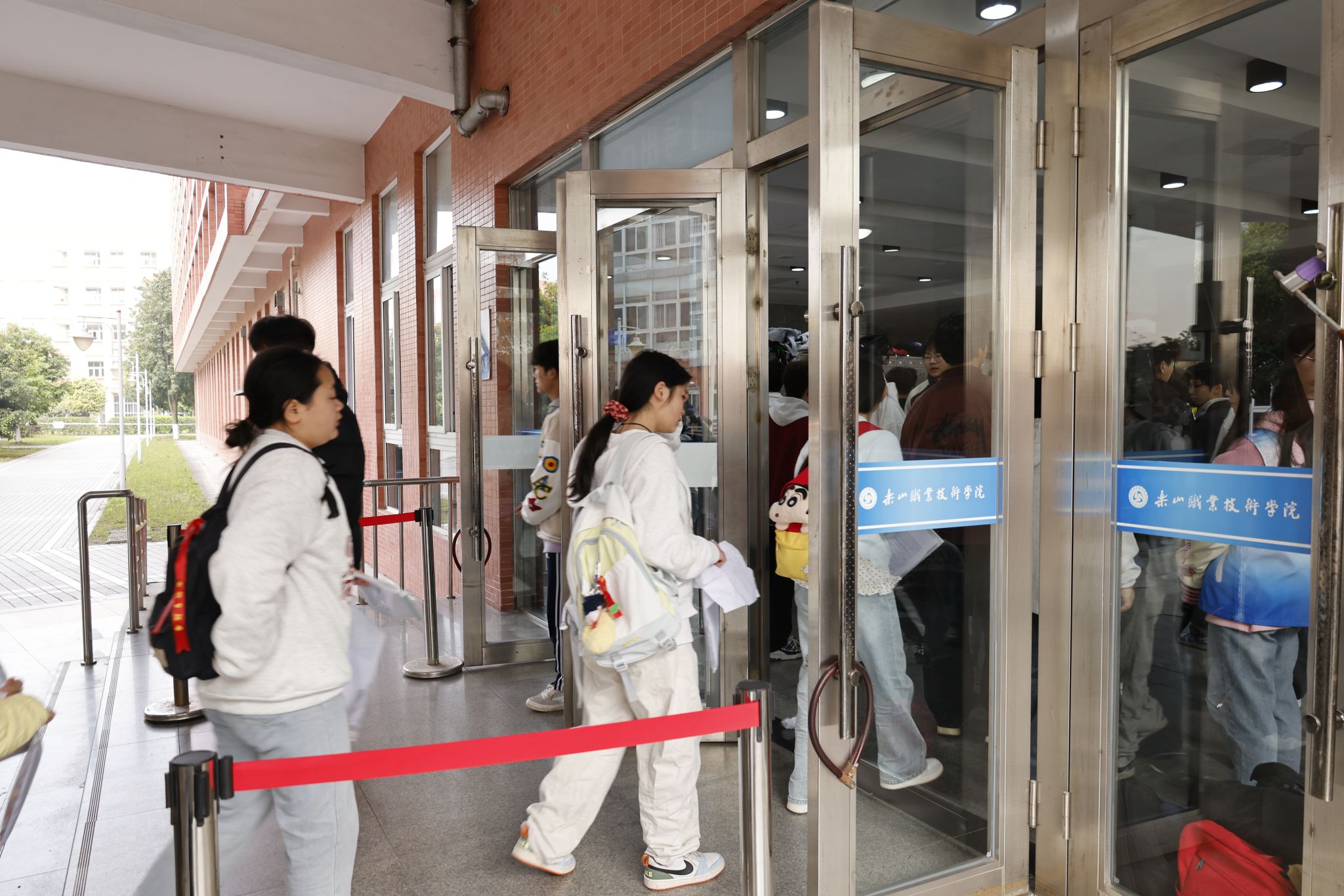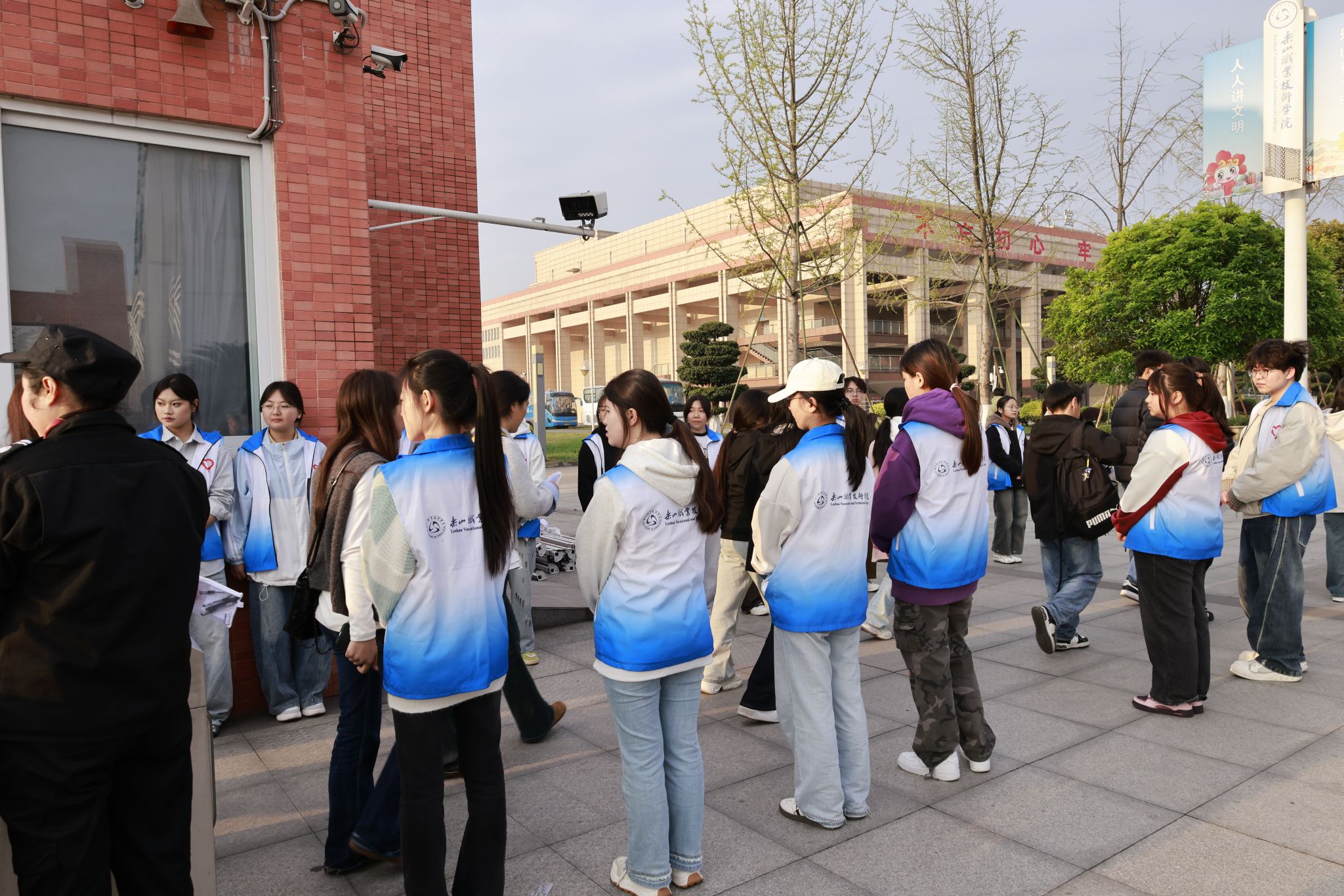 全校各部门通力合作,联合消防等部门对考场设备设施进行全面排查与维护,在考点内外设置清晰指引标识,配备医疗急救点、饮水处及备用考场,以应对各类突发状况。此外,由师生共同组建50余人的志愿者团队,为考生提供入场引导、物品存放等“一站式”暖心服务。乐职是考点,更是温暖的逐梦驿站。
