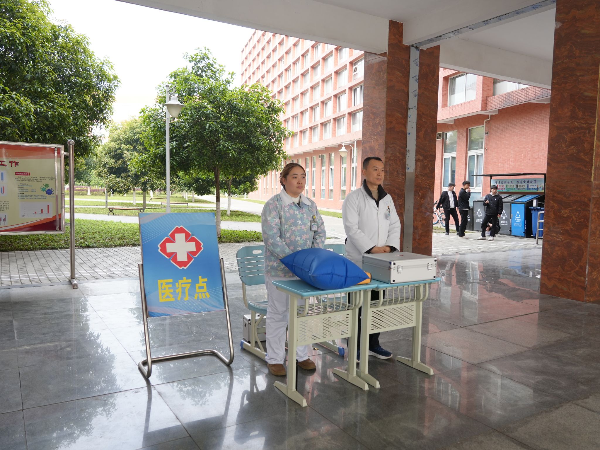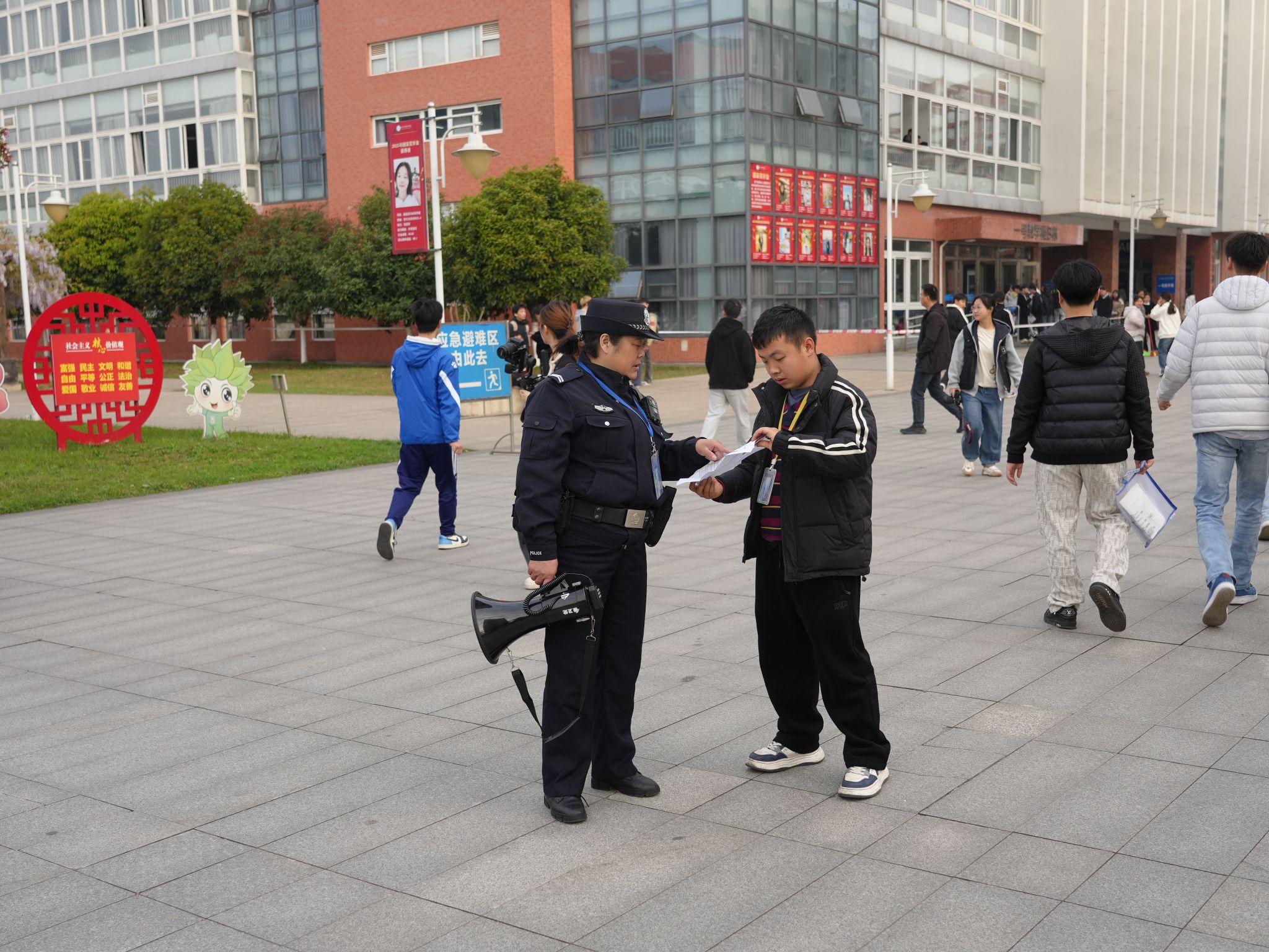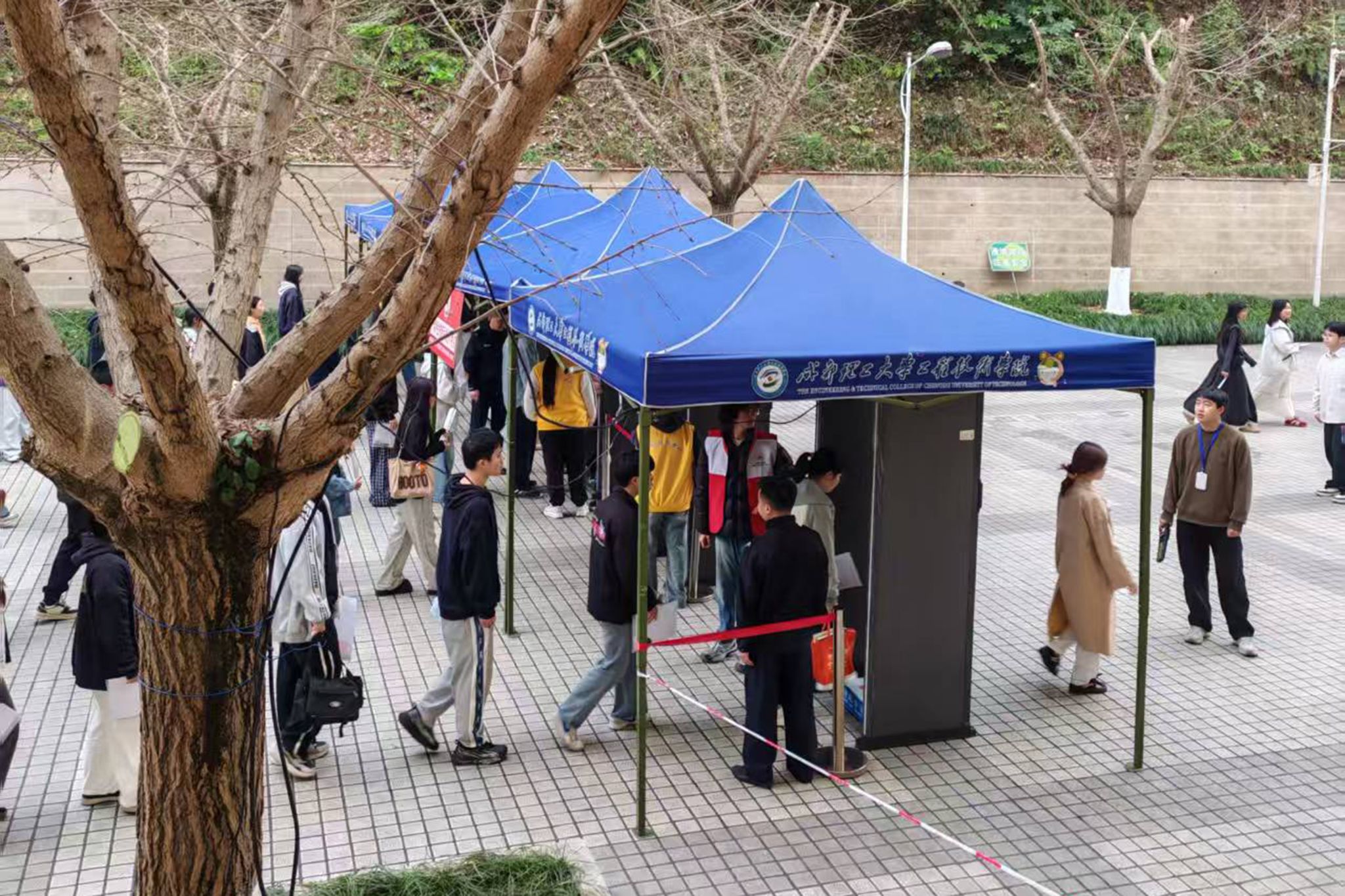 全校各部门通力合作,联合消防等部门对考场设备设施进行全面排查与维护,在考点内外设置清晰指引标识,配备医疗急救点、饮水处及备用考场,以应对各类突发状况。此外,由师生共同组建50余人的志愿者团队,为考生提供入场引导、物品存放等“一站式”暖心服务。乐职是考点,更是温暖的逐梦驿站。