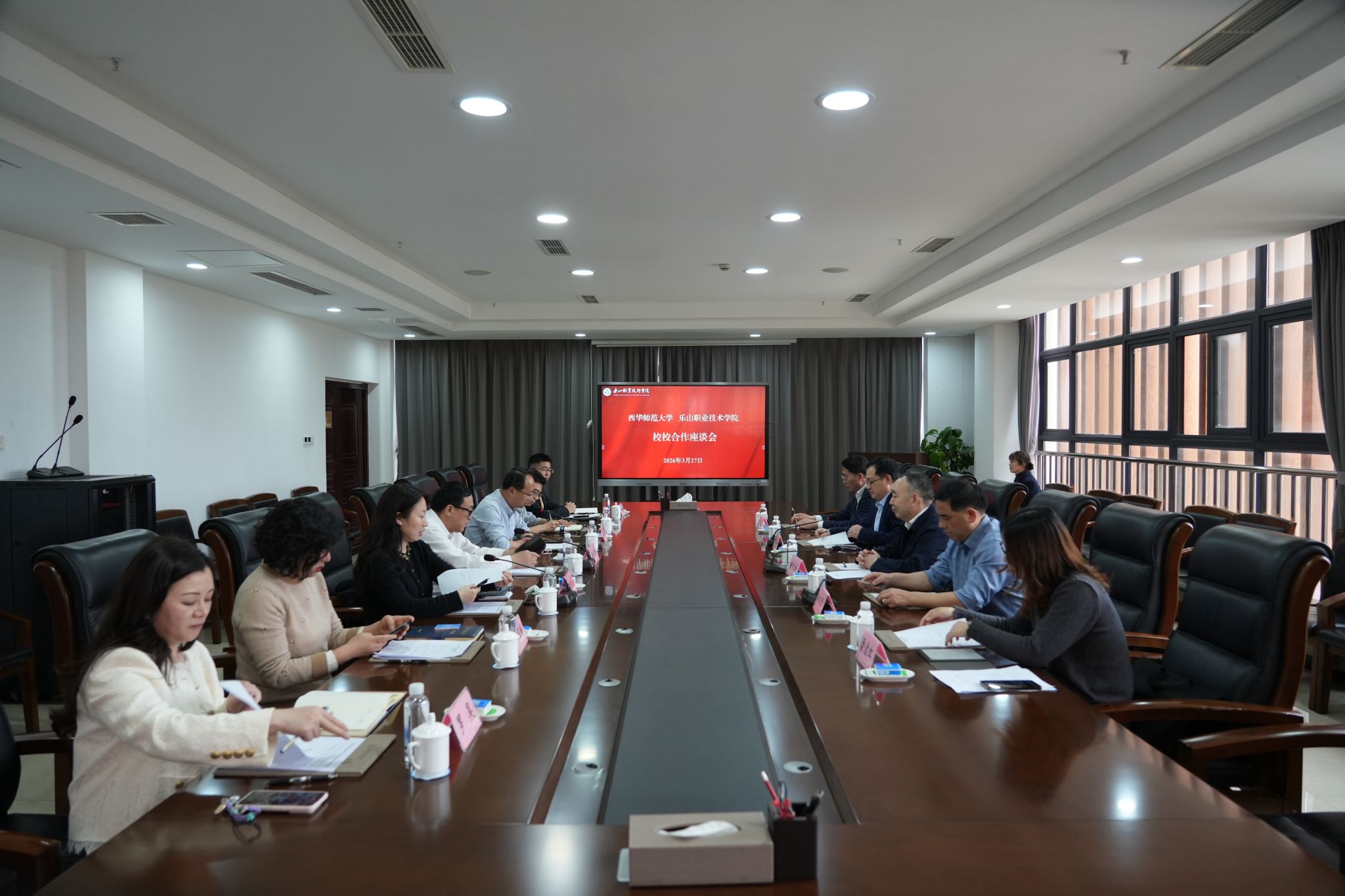 座谈会上,成定彬详细汇报了学校整体发展规划、人才培养模式创新、专业建设布局及职教本科申报筹备等情况。他表示,学校迫切希望通过与西华师范大学的合作,借助其深厚的办学底蕴与优质教育资源,共同探索职教本科人才培养新路径,为学校升格本科奠定坚实基础,双方合作秉持"优势互补、合作共赢"原则,将全力保障项目落地见效。