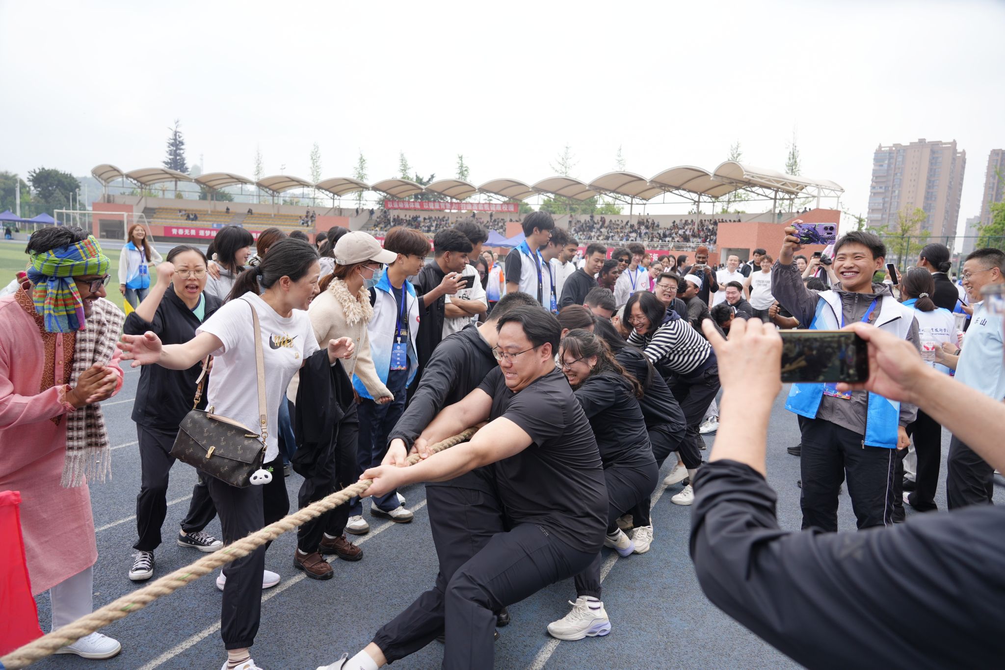 开幕式结束后,教职工运动会正式开赛,设有团体拔河、趣味接力两大集体项目,同时开展男、女组别短跑、跳远、铅球等单项赛事。老师们精神饱满、踊跃参与,在团结协作与奋力拼搏中尽显乐职教职工昂扬向上、活力满满的精神风貌。