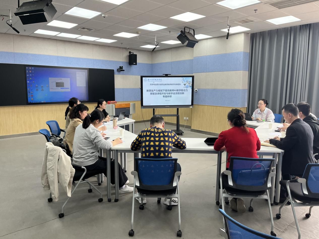 为深入贯彻落实国家职业教育数字化战略行动,推动新质生产力背景下药学教育创新发展,sunbet申搏官方网站“四川省药学专业教师创新团队”开展了新质生产力视域下教师AI教学胜任力提升暨智慧课程开发与教学全流程创新专题研修活动。活动以AI技术赋能教育教学全流程为核心,通过专家引领、案例分享、实践演练与团队研讨,助力教师队伍数字化教学能力提升。