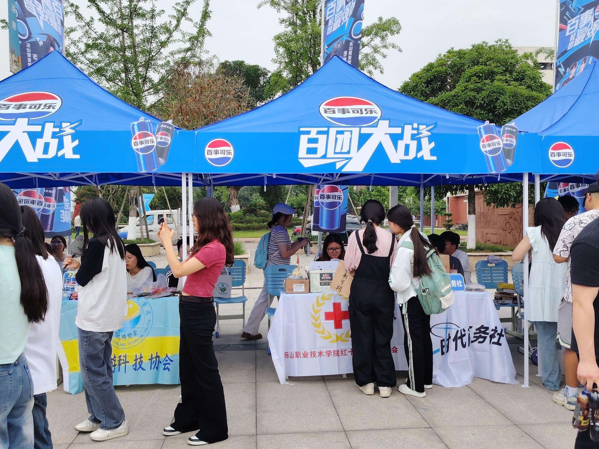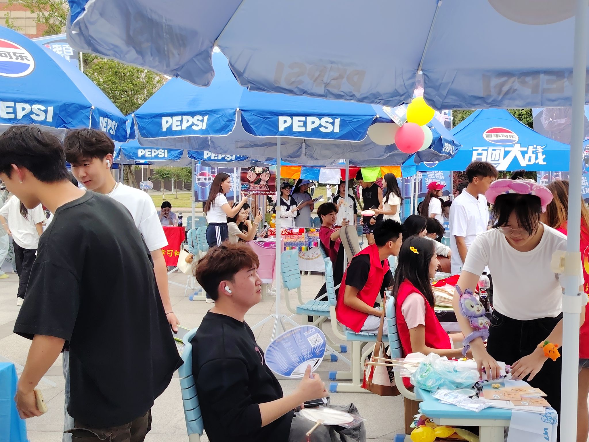 当天下午,“社彩缤纷,百团狂想曲”活动在学校正门处拉开帷幕,共有59个社团参与。活动现场,各社团围绕“创新、实践、融合”的主题,化身为创意摊主,通过各具特色的展示,展现了多元文化的魅力。同学们积极参与其中,感受青春的活力与创意的火花。