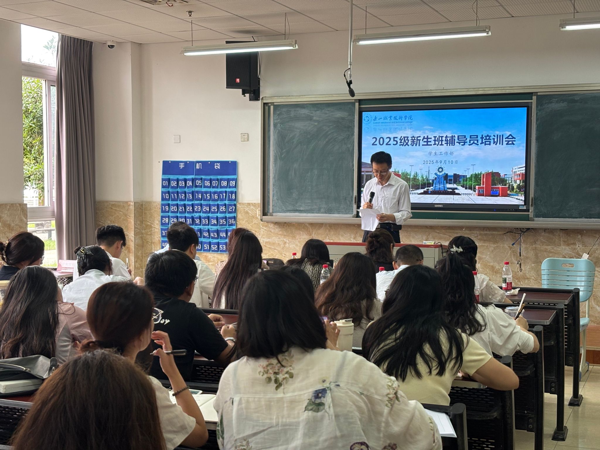 为切实加强新生辅导员队伍建设,帮助新入职辅导员尽快熟悉岗位职责、掌握科学工作方法、全面提升业务能力与专业素养,打造一支高素质、专业化、充满活力的辅导员团队,以保障2025级新生教育、管理与服务工作能够平稳、有序、高效开展,9月10日,学生工作部在教学楼1B104组织开展了2025级新生辅导员业务能力专题培训。2025级全体专兼职新生辅导员共计60余人参加本次培训。本次培训内容详实,紧扣实际,针对性极强,旨在通过系统学习与交流,赋能新生辅导员团队。