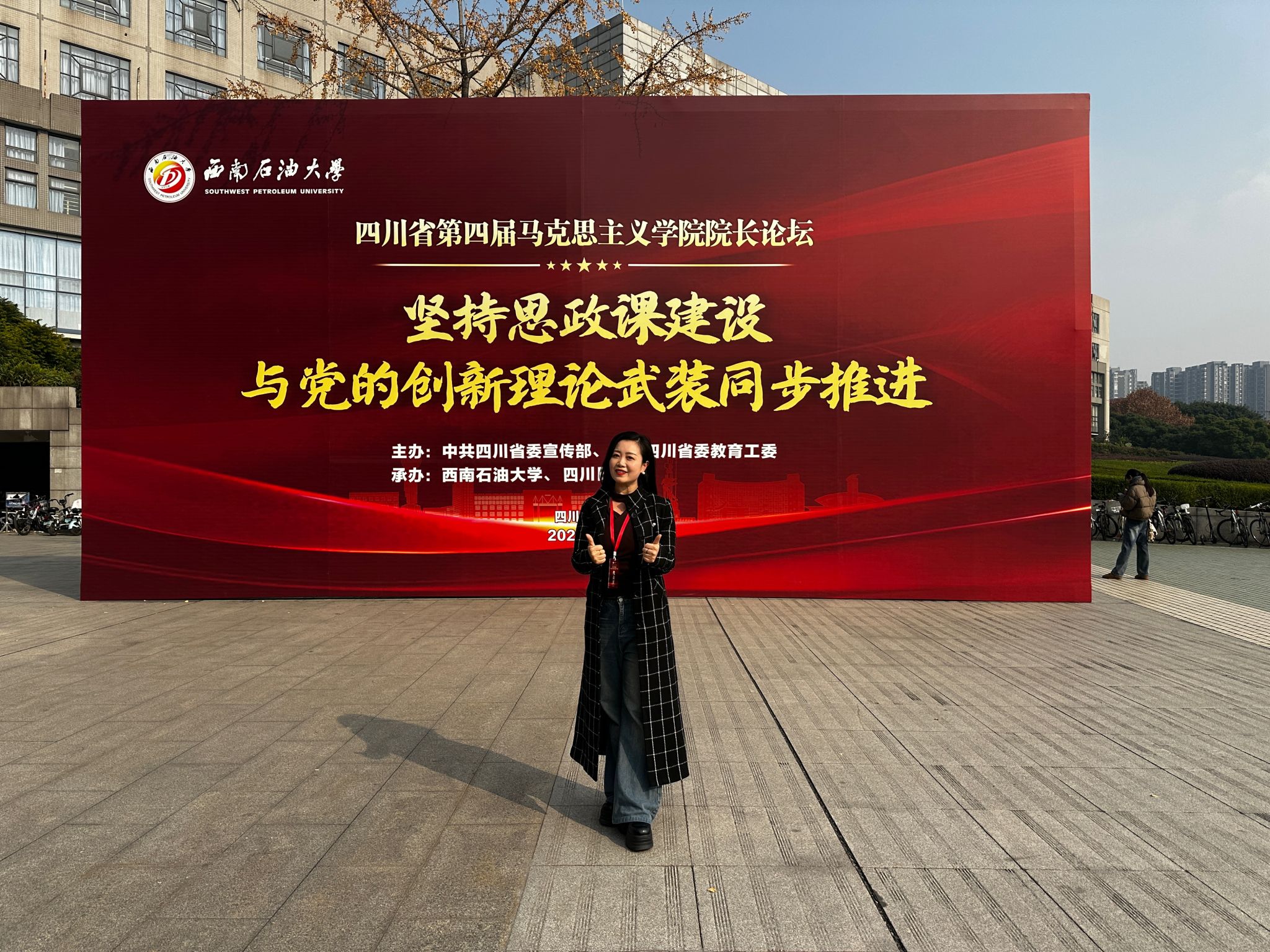 近日,四川省第四届马克思主义学院院长论坛在成都开幕。本届论坛由省委宣传部、省委教育工委主办,西南石油大学、四川日报社承办。来自全国的知名专家学者与省内外高校、党校以及社科研究机构马克思主义学院(思政教研部)的相关负责人,聚焦“坚持思政课建设与党的创新理论武装同步推进”主题开展理论研讨和交流。sunbet申搏官方网站马克思主义学院副院长刘倩参加了本次院长论坛教育活动。