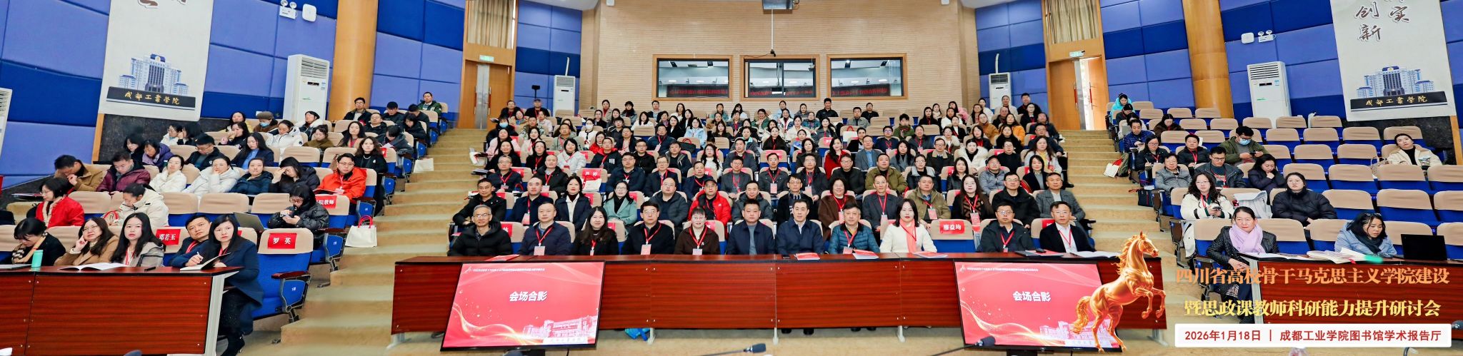 1月18日,四川省高校骨干马克思主义学院建设暨思政课教师科研能力提升研讨会在成都工业学院郫都校区举行。会议由四川省教育厅指导,四川省高等学校思想政治教育研究会思想政治理论课研究分会、四川省高校骨干马克思主义学院、成都工业学院联合主办,《时事报告》杂志社四川服务中心承办。全省60余所高校170余位马院相关人员参会,马克思主义学院副院长刘倩、姚佳秀参加。