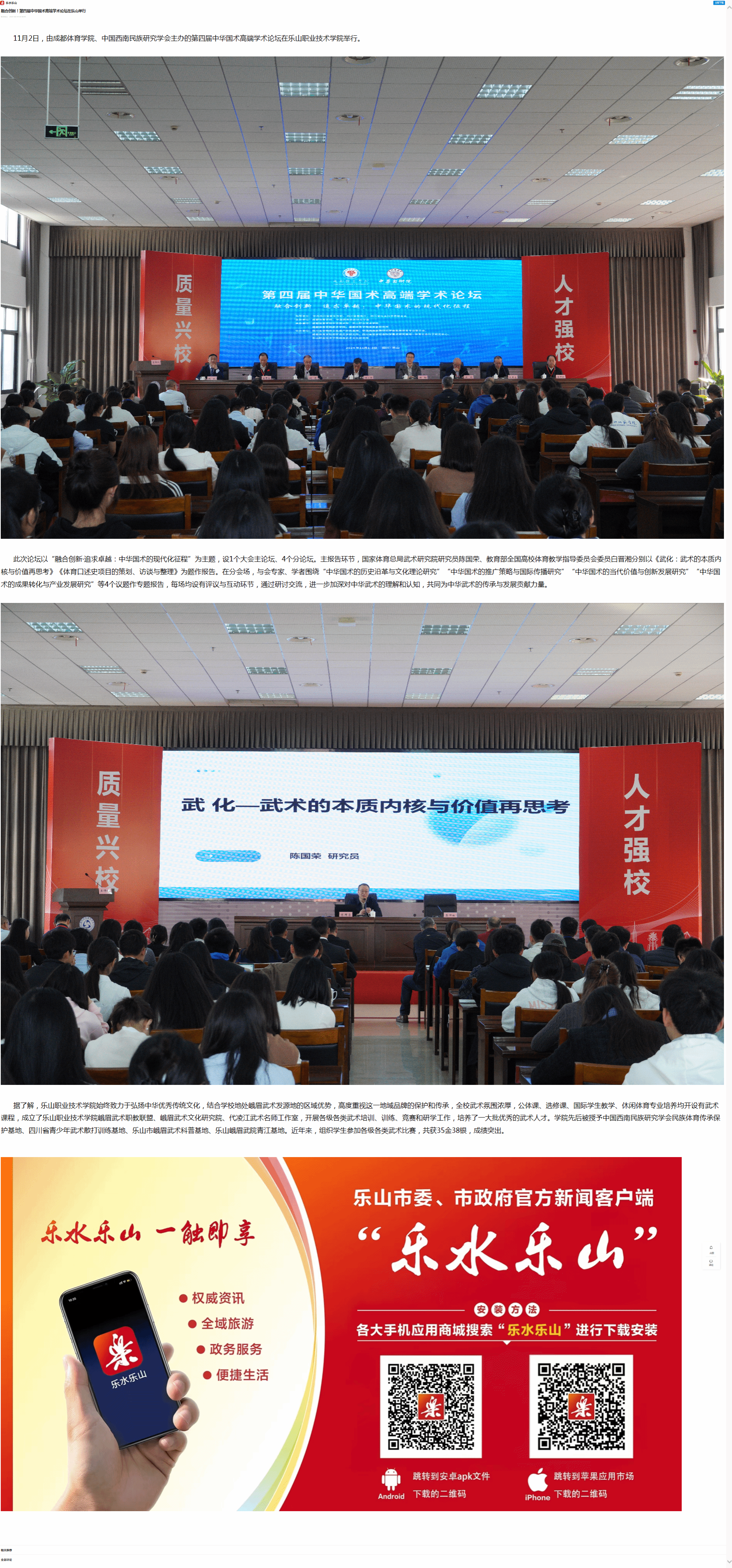 乐水乐山:融合创新!第四届中华国术高端学术论坛在乐山举行