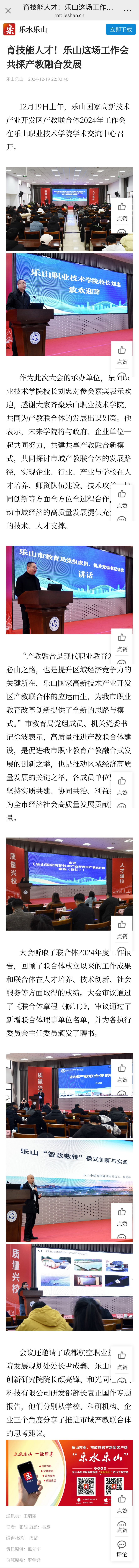 乐水乐山:育技能人才!乐山这场工作会共探产教融合发展