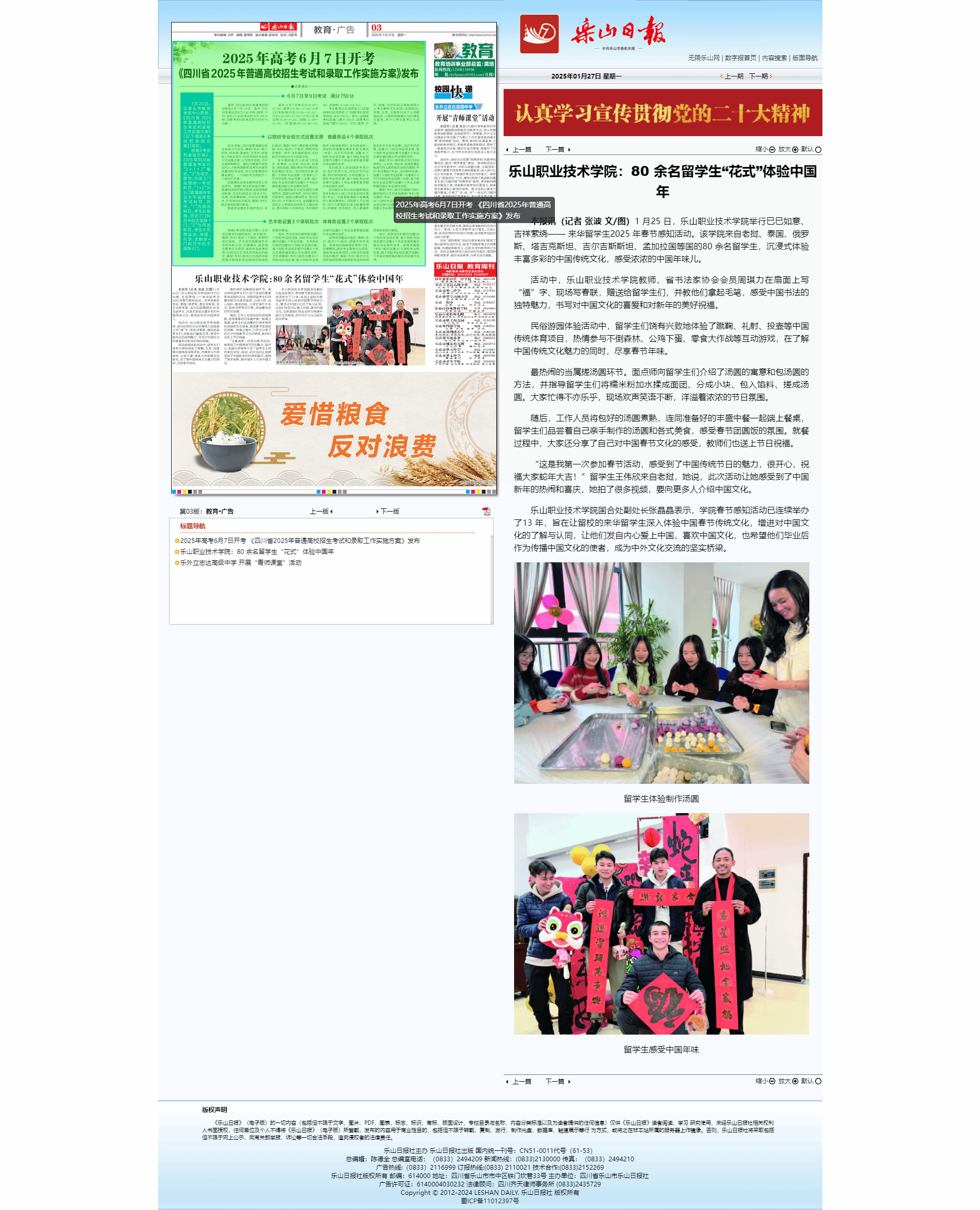 乐山日报:sunbet申搏官方网站:80 余名留学生“花式”体验中国年