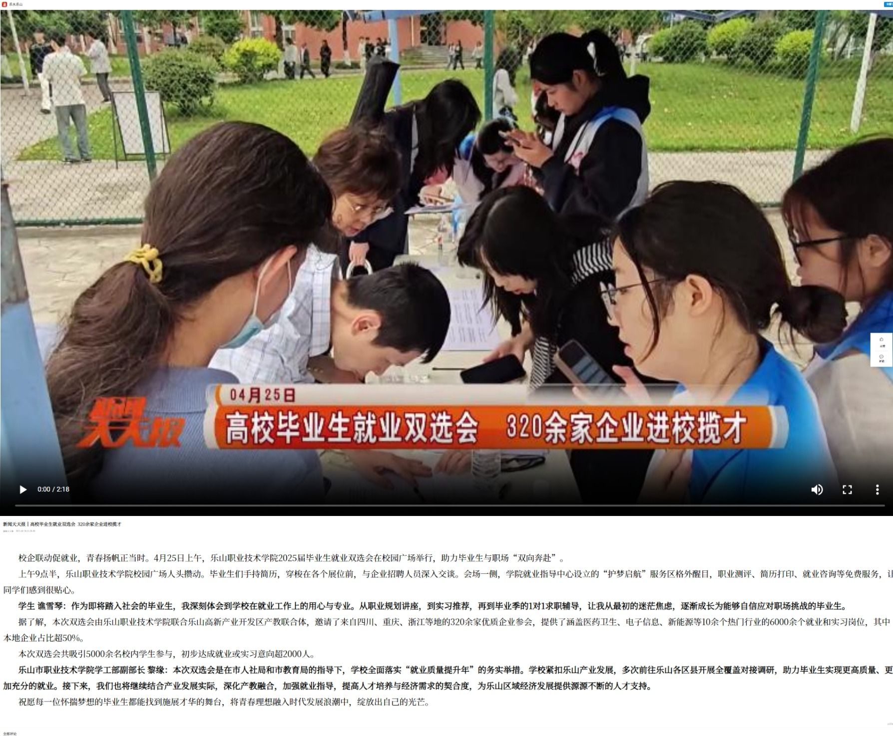 乐山电视台新闻天天报:高校毕业生就业双选会 320余家企业进校揽才(视频)