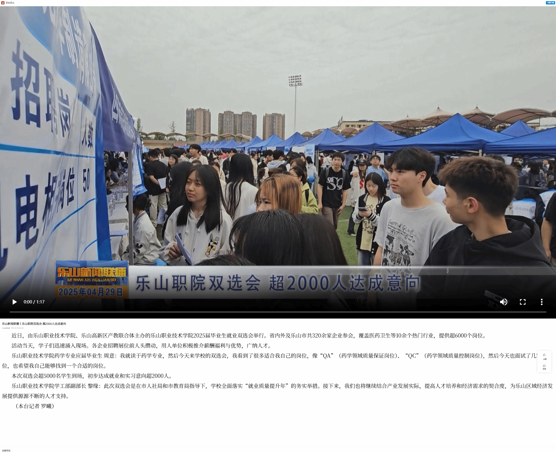 下一篇:乐山电视台新闻天天报:高校毕业生就业双选会 320余家企业进校揽才(视频)