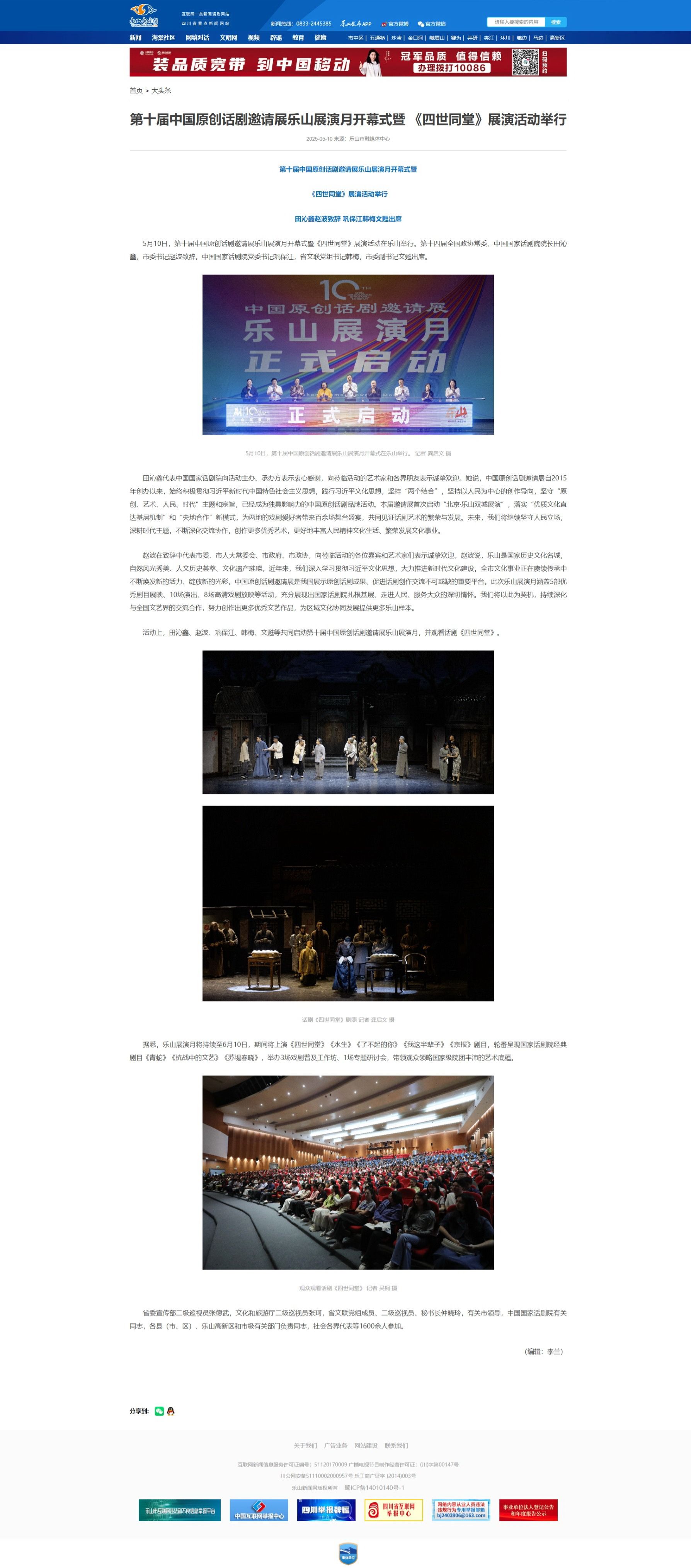 乐山新闻网:第十届中国原创话剧邀请展乐山展演月开幕式暨 《四世同堂》展演活动举行