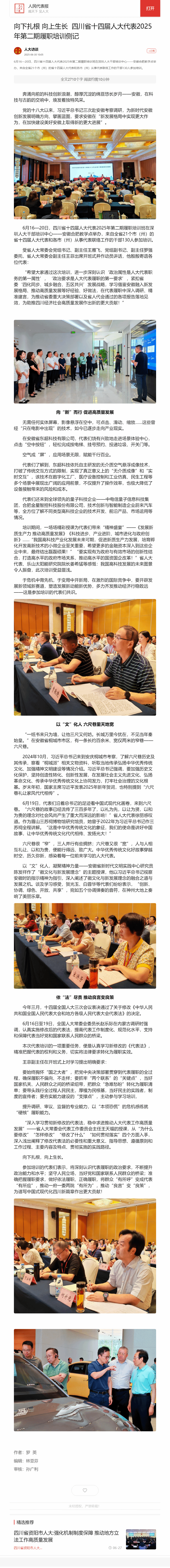 人民代表报:向下扎根 向上生长 四川省十四届人大代表2025年第二期履职培训侧记
