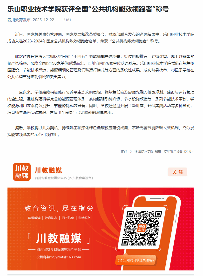 四川教育发布:sunbet申搏官方网站获评全国“公共机构能效领跑者”称号