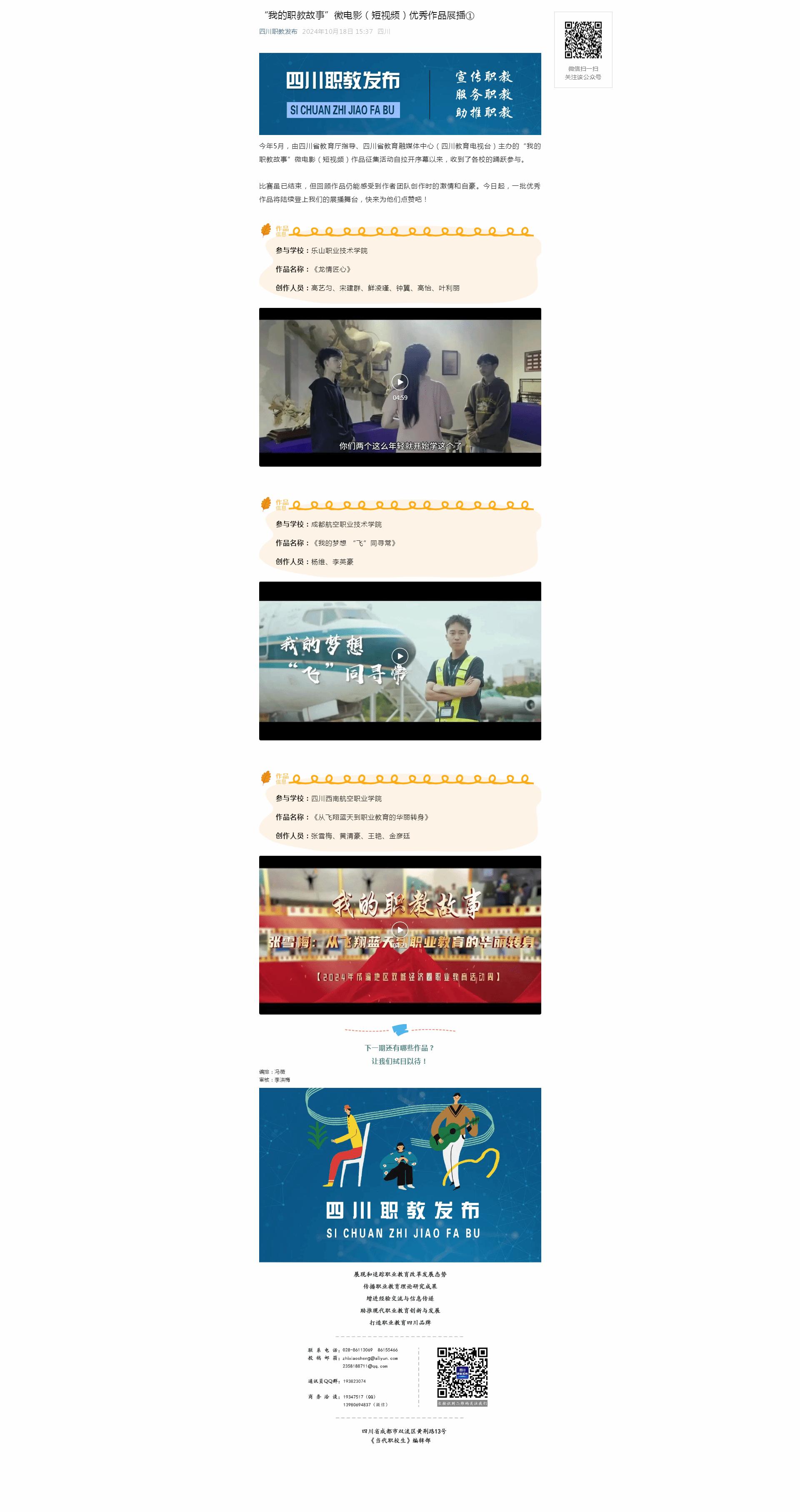 四川职教发布:“我的职教故事”微电影(短视频)优秀作品展播①