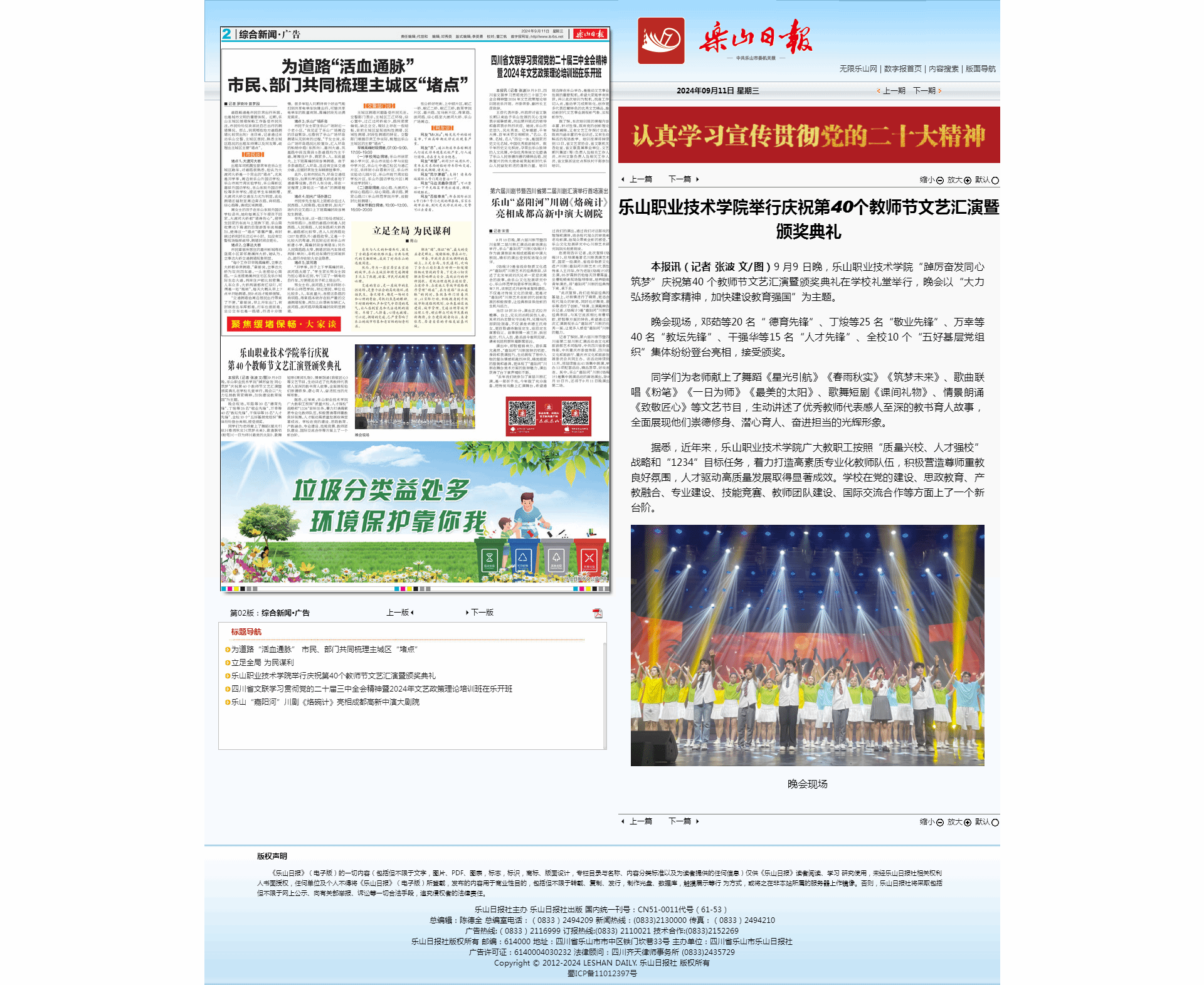 乐山日报:sunbet申搏官方网站举行庆祝第40个教师节文艺汇演暨颁奖典礼