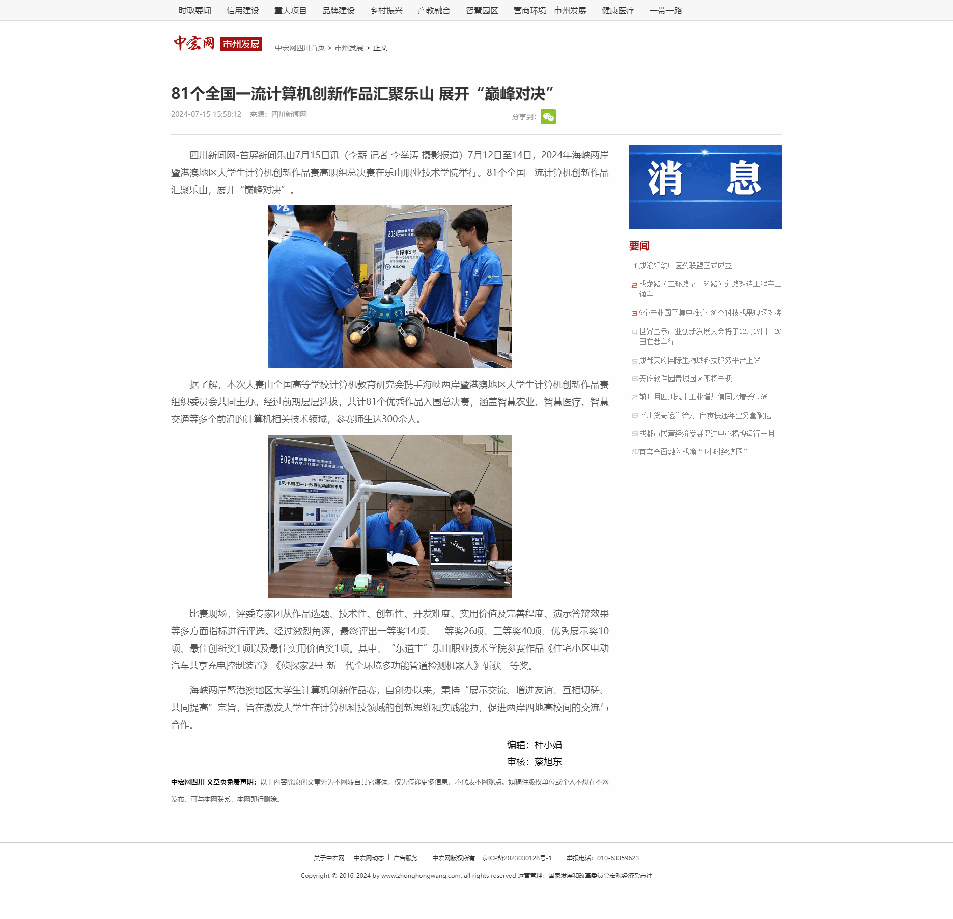 中宏网:81个全国一流计算机创新作品汇聚乐山 展开“巅峰对决”