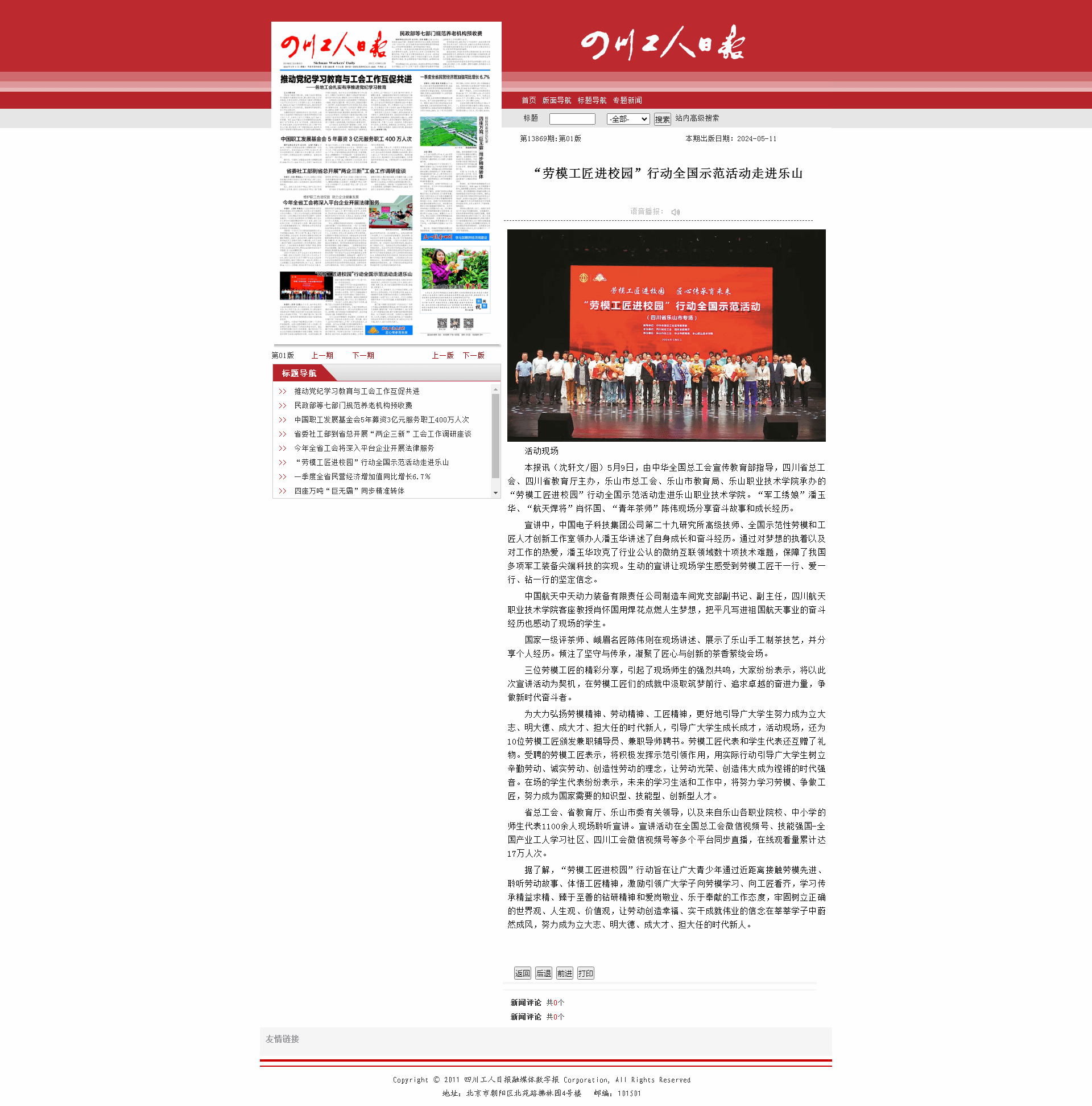 《四川工人日报》“劳模工匠进校园”行动全国示范活动走进乐山