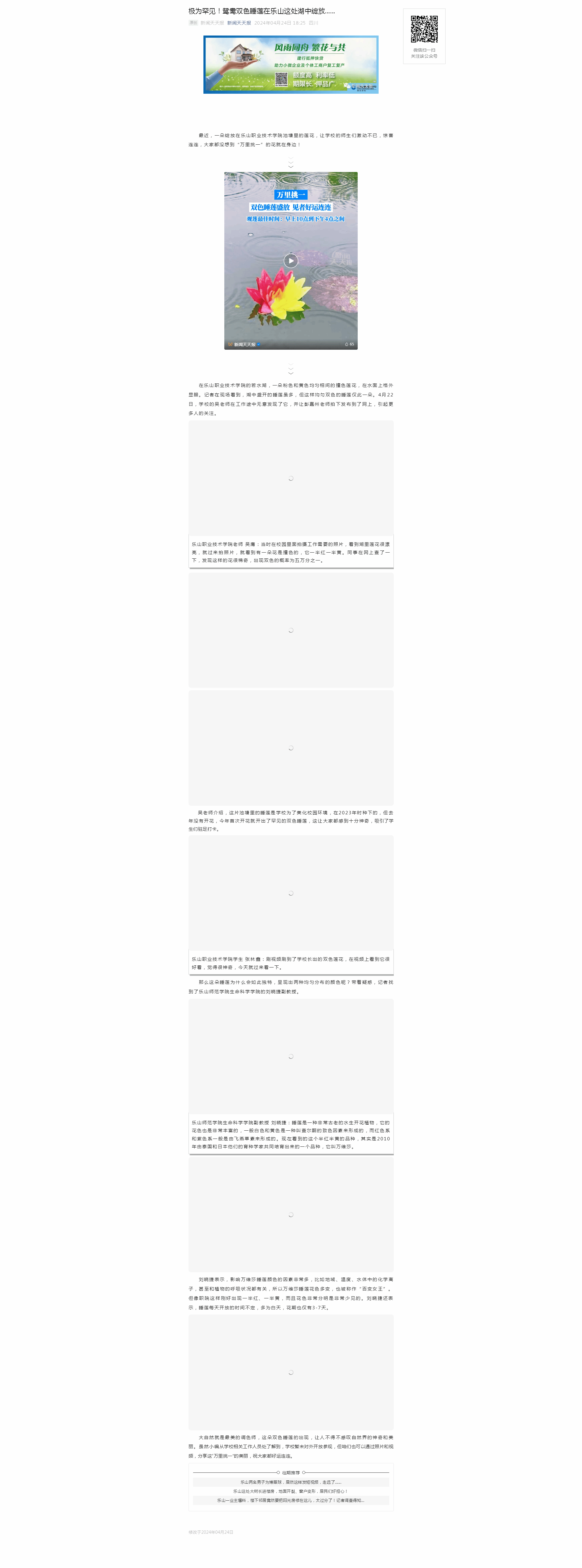 新闻天天报:极为罕见!鸳鸯双色睡莲在乐山这处湖中绽放......