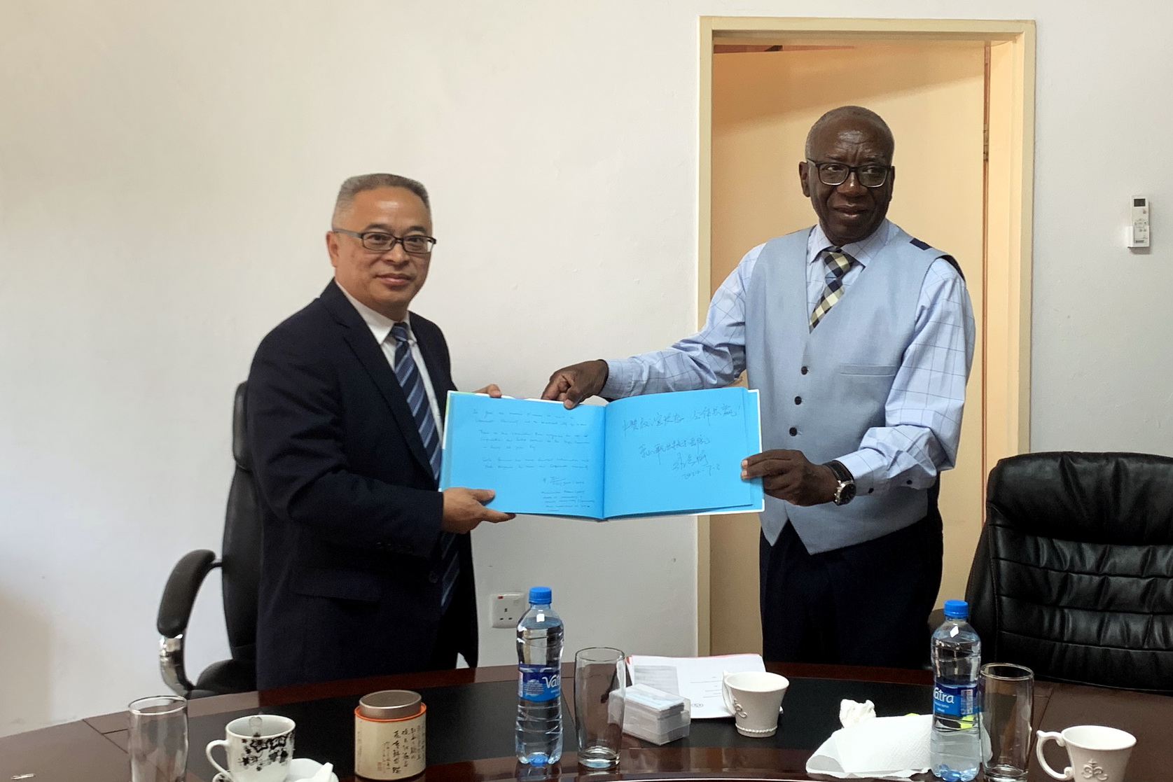 在基特韦市,张学河一行访问了赞比亚铜带大学。赞比亚铜带大学是赞比亚排名第二的高校,其工程类专业吸引了非洲多个国家的学生学习。代表团与铜带大学校长伊玛斯库、工程学院院长维克多等人进行交流座谈,双方就合作开展新能源项目研究和共建实验室、共建专业护理人才培养及标准制定等进行了探讨,此外双方还就合作备忘录中关于合作模式、合作项目等内容开展了详细研讨并达成共识。