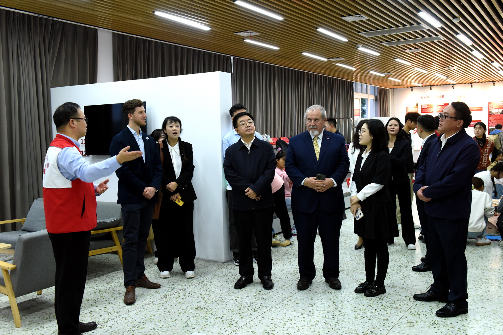 2023年11月2日,阿根廷布宜诺斯艾利斯省国际合作处主任马丁·罗森加德、基尔梅斯国立大学校长阿尔弗雷多·阿方索一行在四川省外事办公室陈云的陪同下,来学校考察调研。市委常委、市委组织部部长赖俊,市经济合作和外事局党组书记、局长贾东,学校党委书记成定彬,党委委员、副校长周芹陪同代表团一行考察调研。