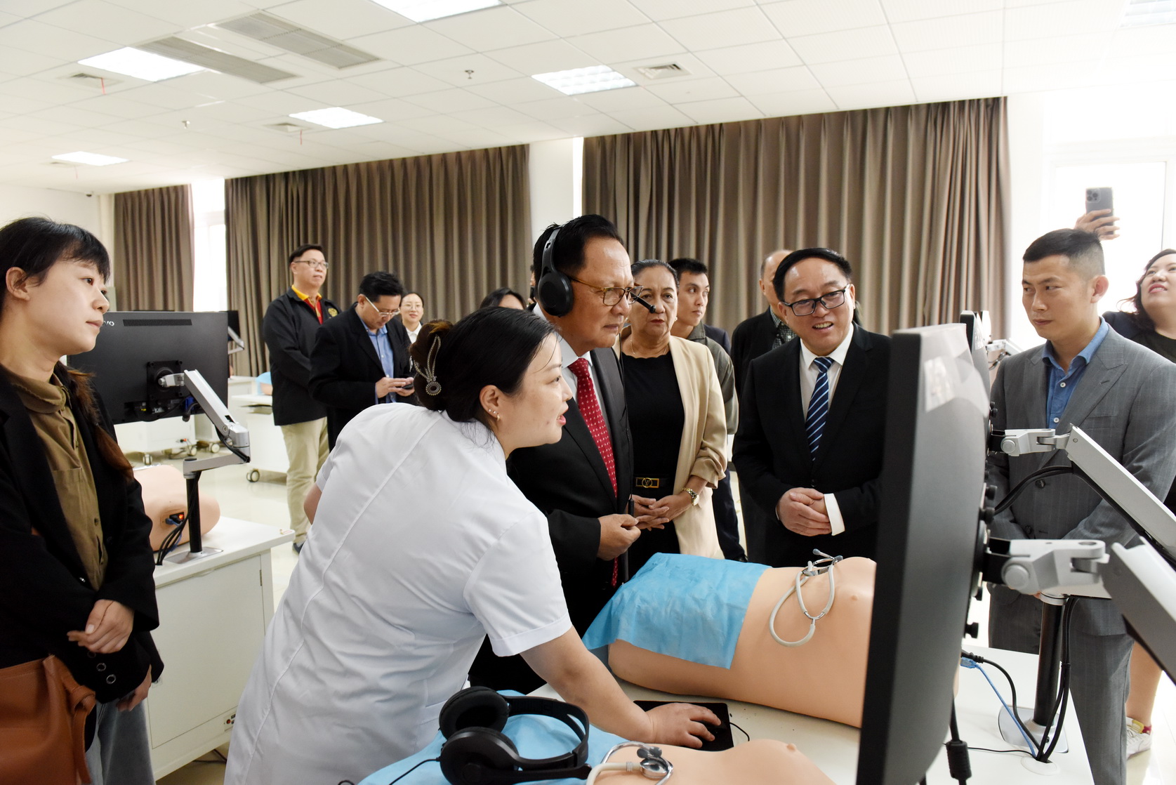 5月10日上午,菲律宾中国了解协会主席劳尔·兰比诺一行在乐山市经济合作外事局相关负责同志陪同下莅临申搏官网实地考察。学校党委书记成定彬,校党委委员、副院长周芹,党政办、教务处、国际学院相关负责同志陪同考察。