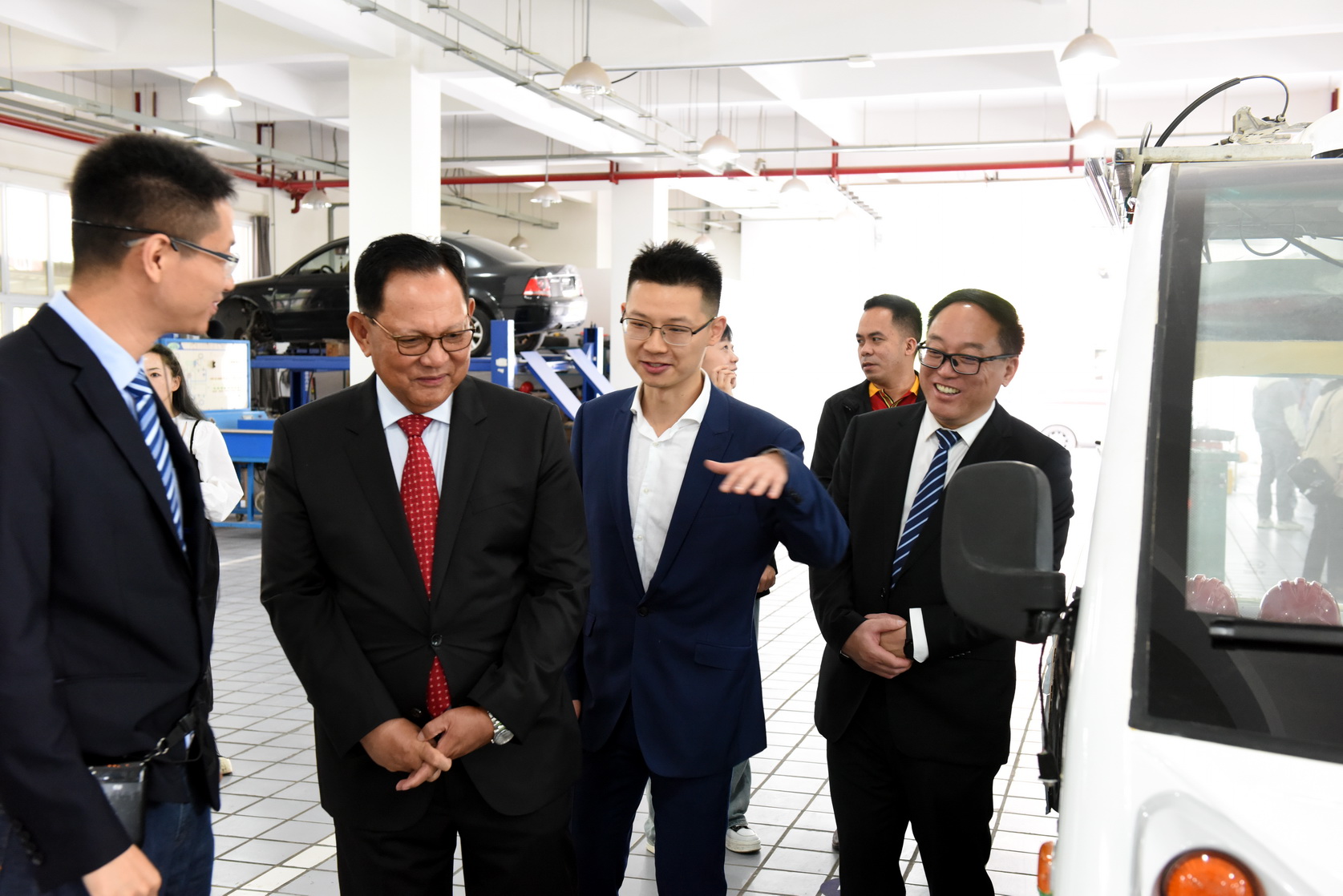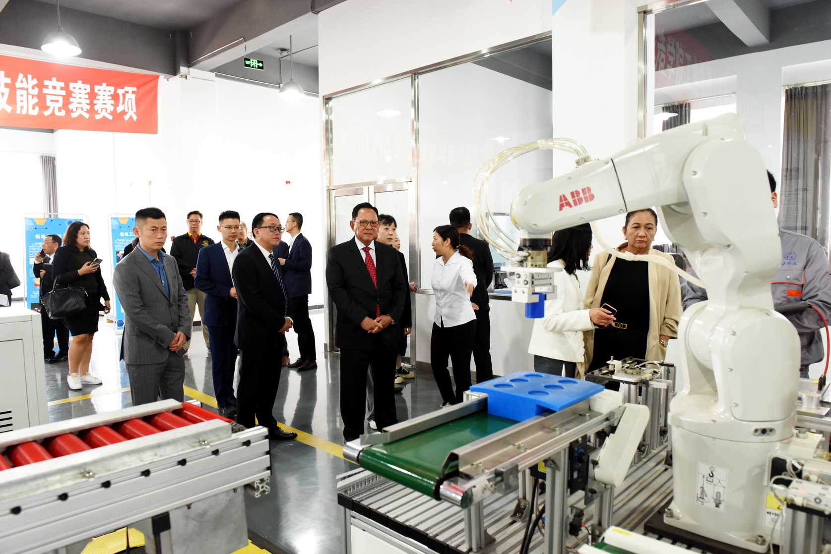劳尔·兰比诺一行首先来到礼堂观看了学院宣传片,随后在青江武术基地观看学生武术训练,在1号实训楼医护实训室、多晶硅实训基地、工业机器人技术实训基地、汽车维修实训基地和学术交流中心参观考察。