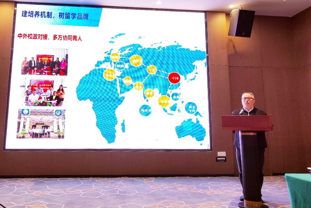 张学河介绍了学院国际交流工作的历程和成绩,并分享学院在国家交流办学工作中的经验:职业教育要与产业紧密结合,教随产出,产教同行;要不断总结“走出去”办学经验,制定职业教育国际化办学的指标体系。作为中国-赞比亚职业技术学院董事会成员,张学河代表学院审议了相关议案和报告。