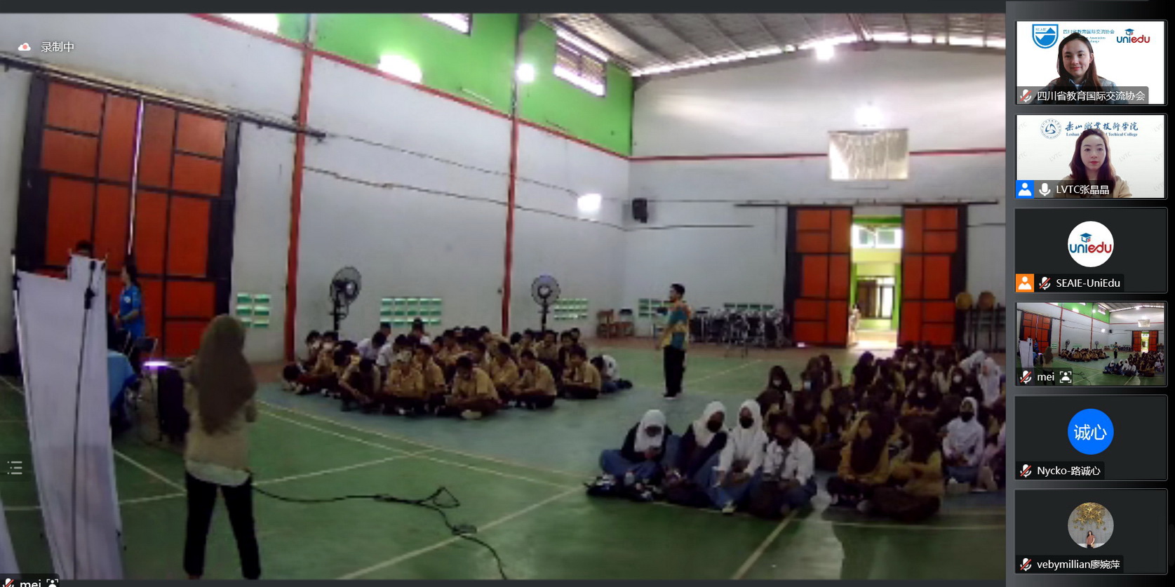 宣讲活动围绕乐山市的文化与旅游特色展开,系统介绍学院的办学历史、办学特色、办学实力、办学优势与办学影响,全方位宣讲了学院来华留学教育的整体概况、招生政策、优势专业、住宿条件、奖学金政策等。印尼学生和家长对留学乐山表现出了浓厚兴趣,在互动环节,学院招生人员与海外师生展开对话交流,详细解答了国际学生关心的学费、生活费、住宿、交通、奖学金等问题。