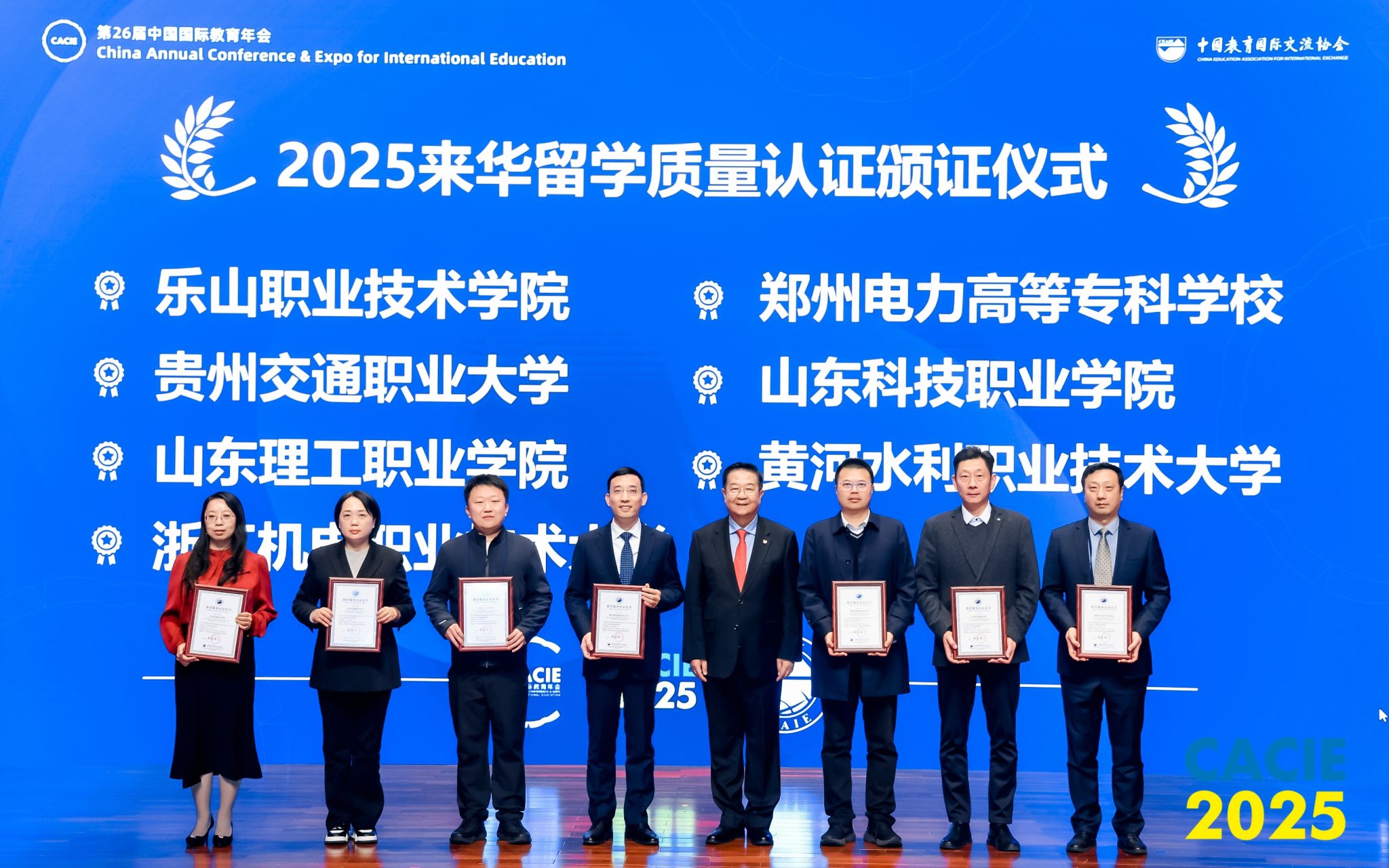 10月30日,第26届中国国际教育年会在北京召开。sunbet申搏官方网站党委委员、副校长周芹代表学校出席,并在平行论坛“育见中国:来华留学高质量发展国际研讨会”上接受中国教育国际交流协会会长刘利民授牌,学校正式通过《来华留学生高等职业教育质量认证标准》认证,评价等级B,有效期6年。