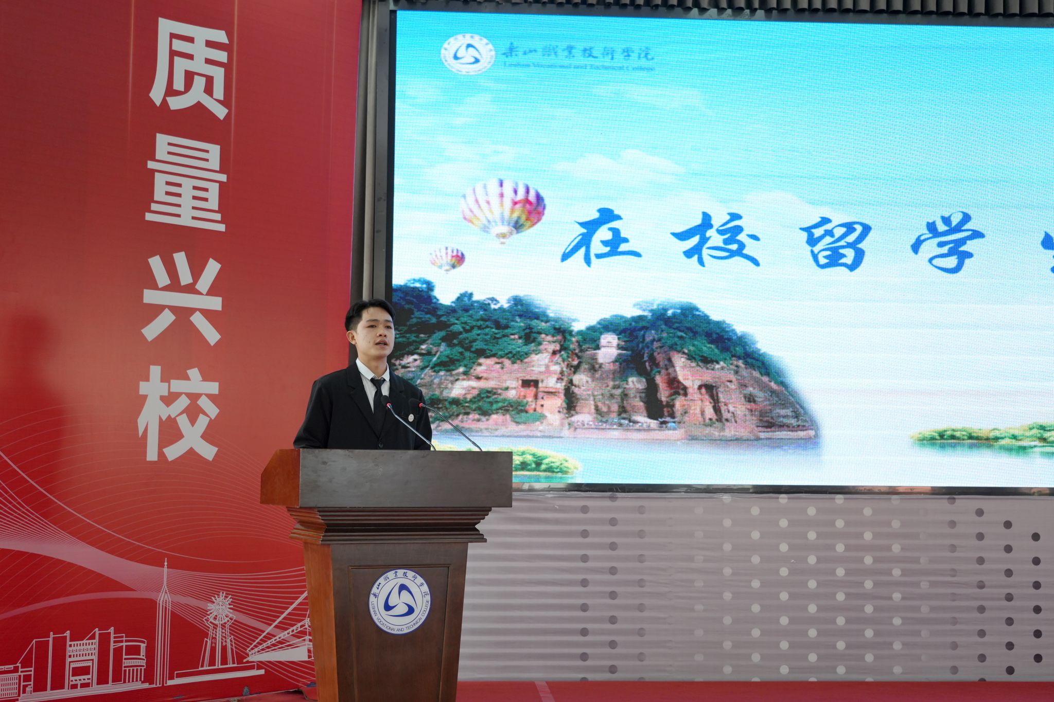 开学典礼在庄严而温馨的氛围中拉开帷幕。刘忠发表了热情洋溢的致辞,向来华新生介绍了乐山这座城市深厚的文化底蕴与优质的教育资源。并围绕来华留学生的成长与发展提出三点期望:一要秉承“诚信、笃志、求真、创新”的校训,涵养品格、锤炼意志;二要专注学业、精进技能,努力成为专业领域的行家里手,为未来职业发展奠定坚实基础;三要主动融入、促进交流,跨越文化与语言障碍,成为中国故事的见证者与传播者,成为推动中外文化交流与人民友好的青年使者。