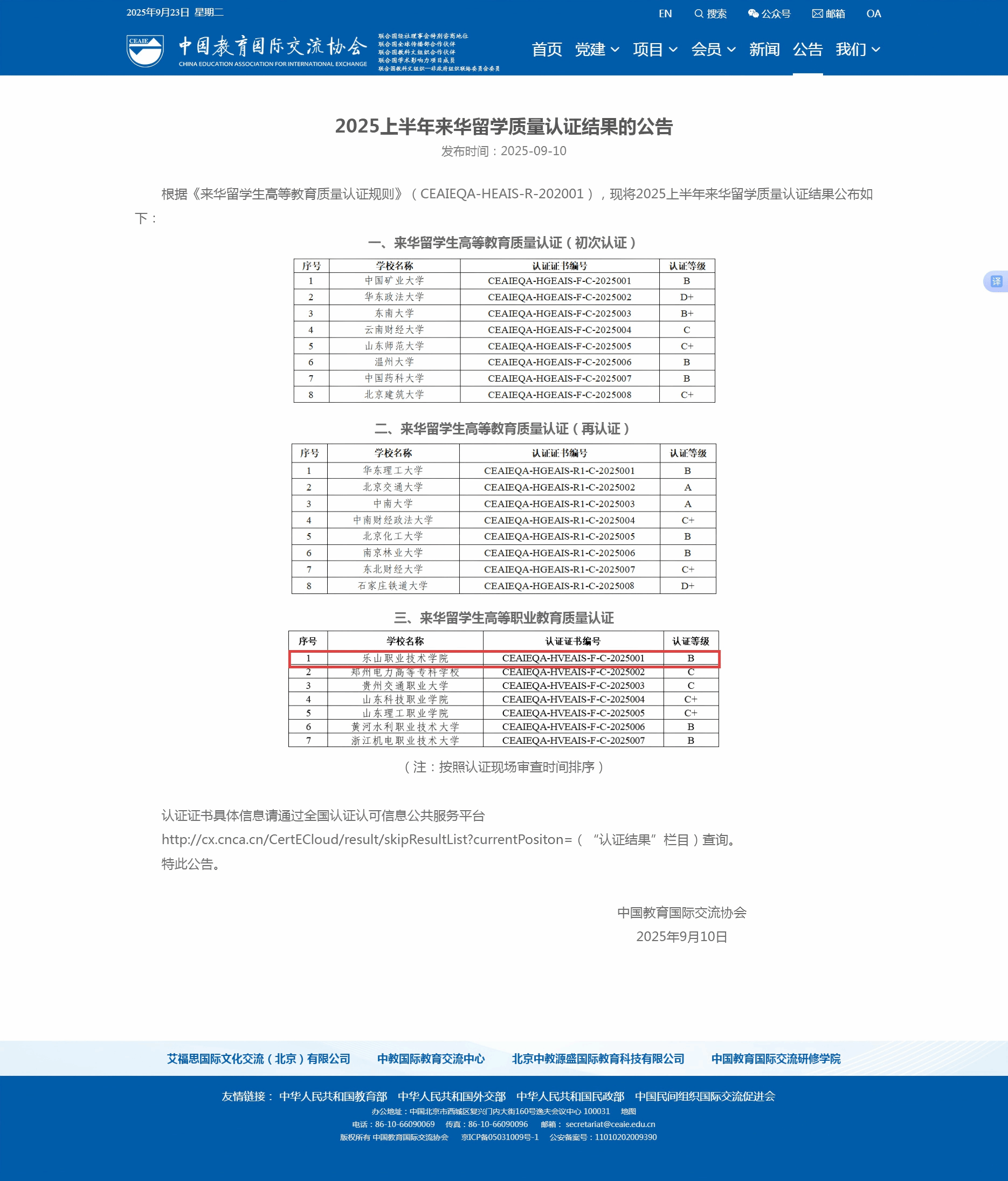近日,sunbet申搏官方网站在由中国教育国际交流协会组织的2025年上半年来华留学质量认证中,获得B级认证结果,认证有效期六年。这是申搏官网首次参与并通过此项国家级质量认证,标志着学校来华留学教育与管理水平达国家公认标准,获权威认可。