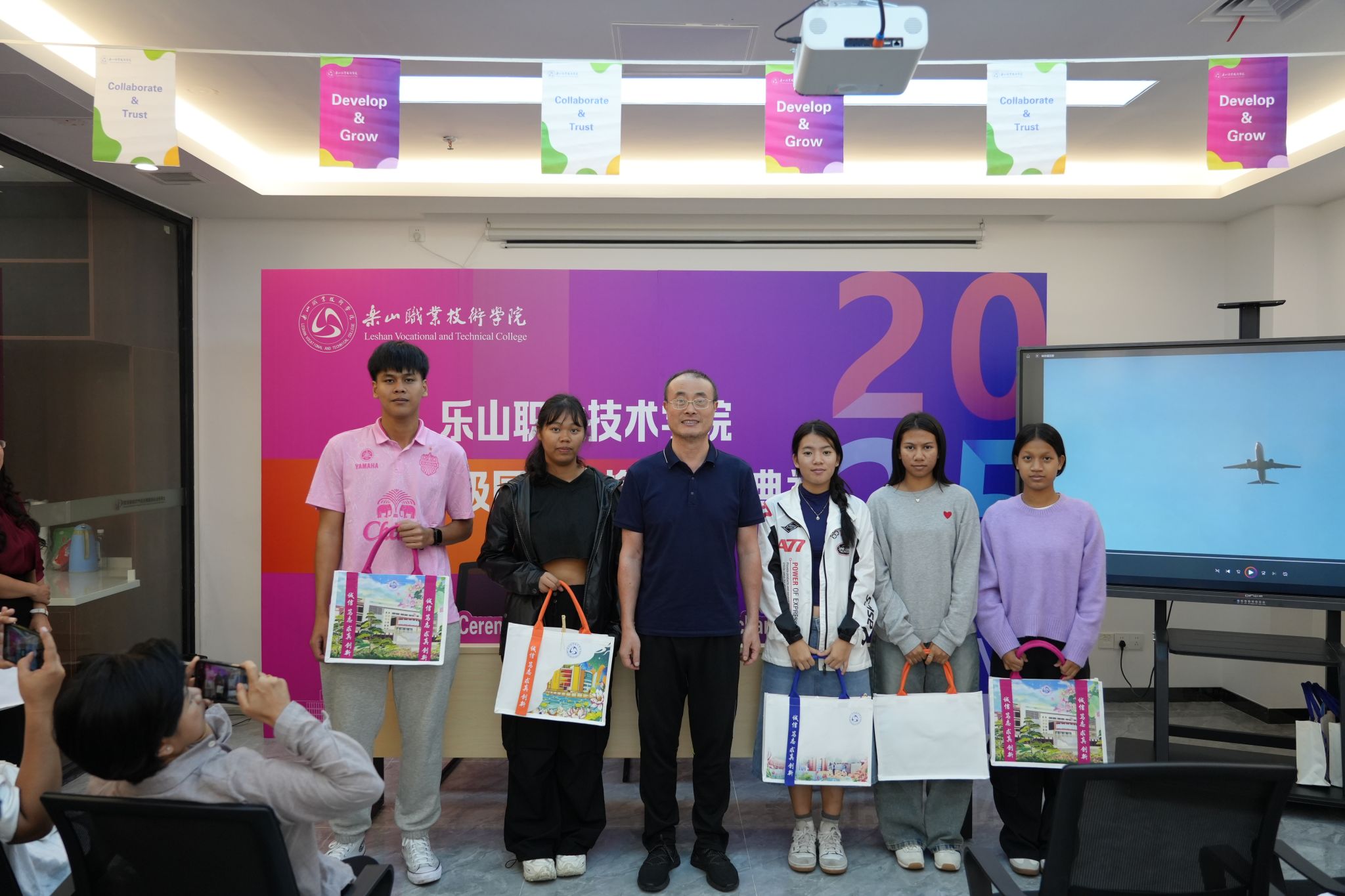 典礼最后,校领导和泰国交换生及家长代表互赠礼品并合影留念,记录下这一难忘的时刻。