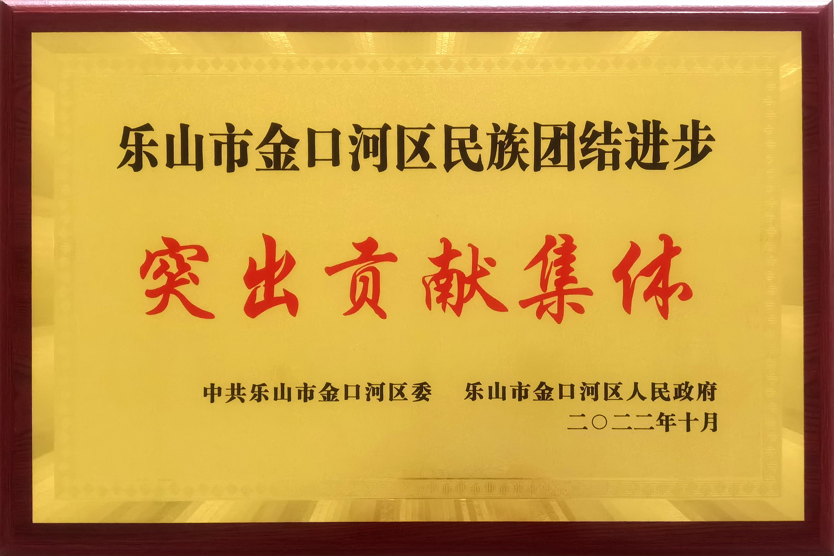 11月16日,乐山市金口河区召开2022年民族团结进步表扬大会,sunbet申搏官方网站被评为乐山市金口河区民族团结进步突出贡献集体,驻村帮扶干部冯涛、罗海林被评为金口河区民族团结进步突出贡献个人。
